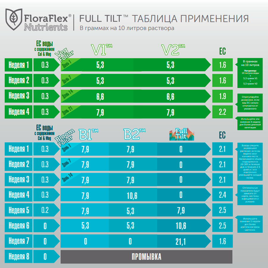 Команда профессионалов FloraFlex скрупулезно выверяет формулу каждого препарата и использует высококачественные нутриенты для производства удобрений. Все элементы и детали гидропонных микрокапельных систем, равно как и многочисленные аксессуары, посадочные емкости и инкубаторы для проращивания семян и рассады производятся из биологически дружественного и инертного к развитию патогенной микрофлоры пластика и имеют безупречную эргономику.