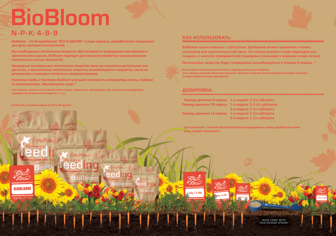 Линейка удобрений от Powder Feeding – порошкообразные препараты нового поколения. Их инновационная формула позволяет легко варьировать концентрацию и может применяться на плодородных почвах и кокосе. Производитель дает четкие рекомендации для разных условий применения и гарантирует соответствие своих продуктов нормам CE 889/2008.