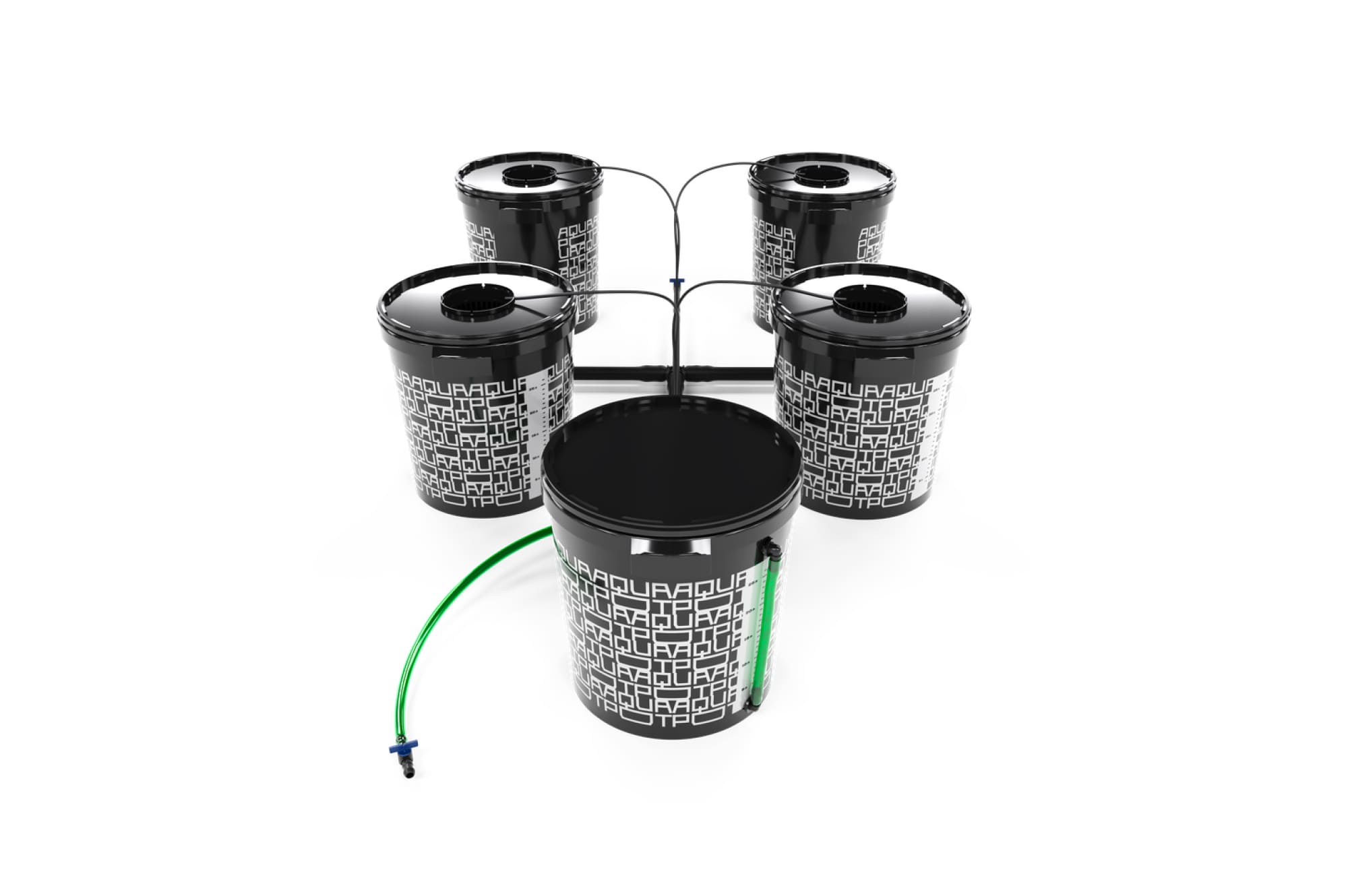 Aqua Pot XL 4 - это гидропонная система, применяющая простой и надежный метод глубоководной культуры с капельным поливом, состоящая из 4 посадочных мест и одного контрольного резервуара. Ведра в системе объединены в одну замкнутую систему при помощи магистральной трубки. В комплектацию входит, компрессор, водяная помпа для перемешивания удобрений и подачи раствора к растению через капельницы, а так же для слива раствора предусмотрен кран.