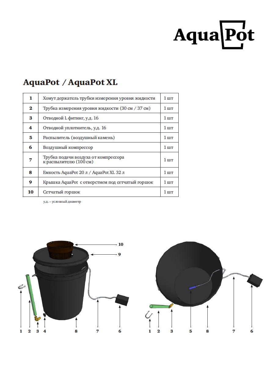 • Крышка AquaPot c отверстием под сетчатый горшок – 1 шт;
