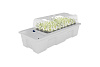 Система универсальна и подходит для любых субстратов — торфа, кокосового волокна, керамзита, минеральной ваты и других. В ней легко проращивать семена, укоренять черенки или выращивать микрозелень. Благодаря продуманной конструкции её можно оставить без присмотра на несколько дней: помпа автоматически подаёт воду, а клапан защищает от перелива.