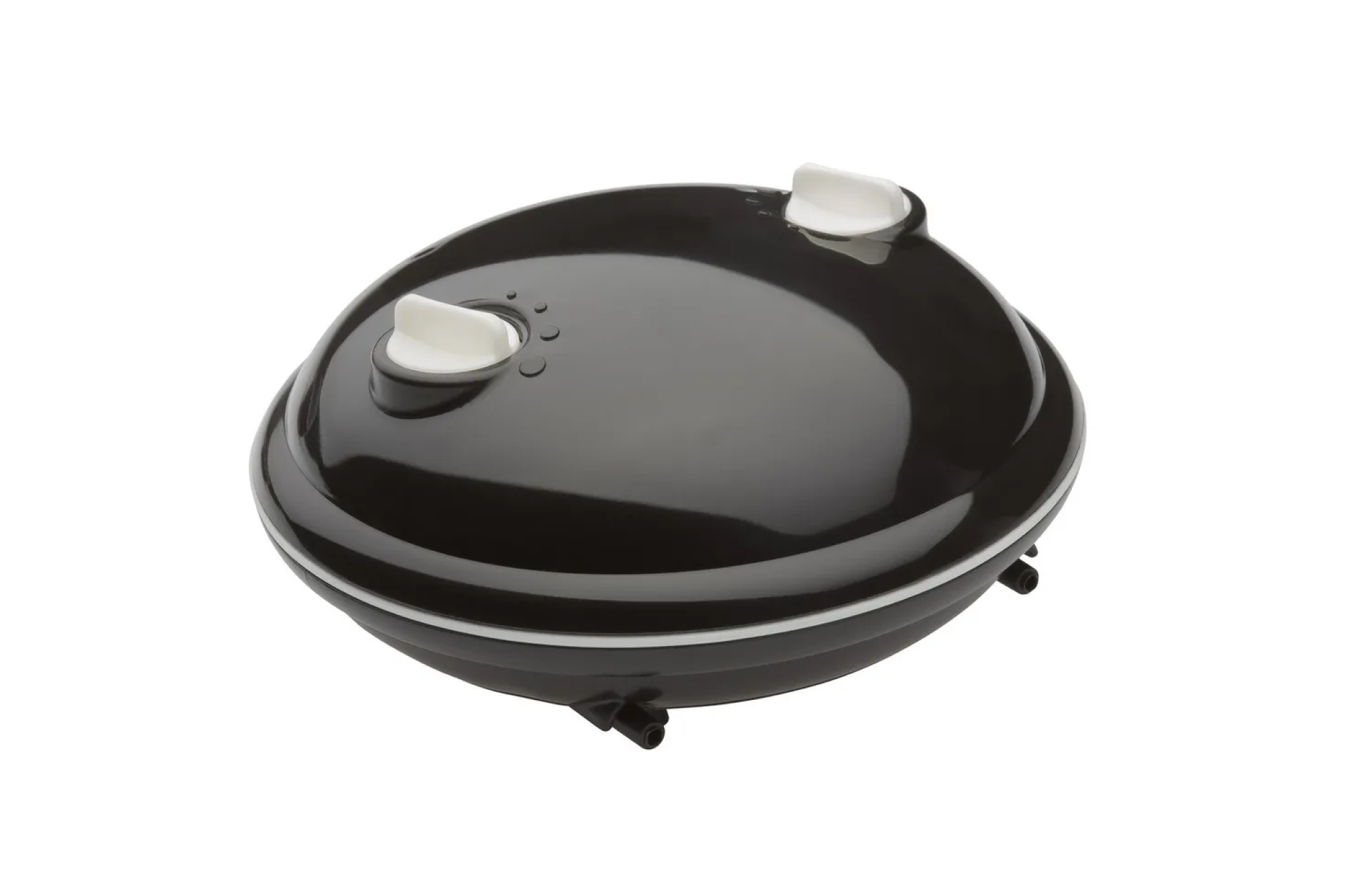 Компрессор обладает стильным дизайном. Изготовлен из прочного глянцевитого черного пластика. Регуляторы потоков расположены на куполе корпуса и представляют собой эргономичные крутящиеся ручки белого цвета. Ножки устройства произведены из мягкой резины и эффективно гасят вибрацию.
