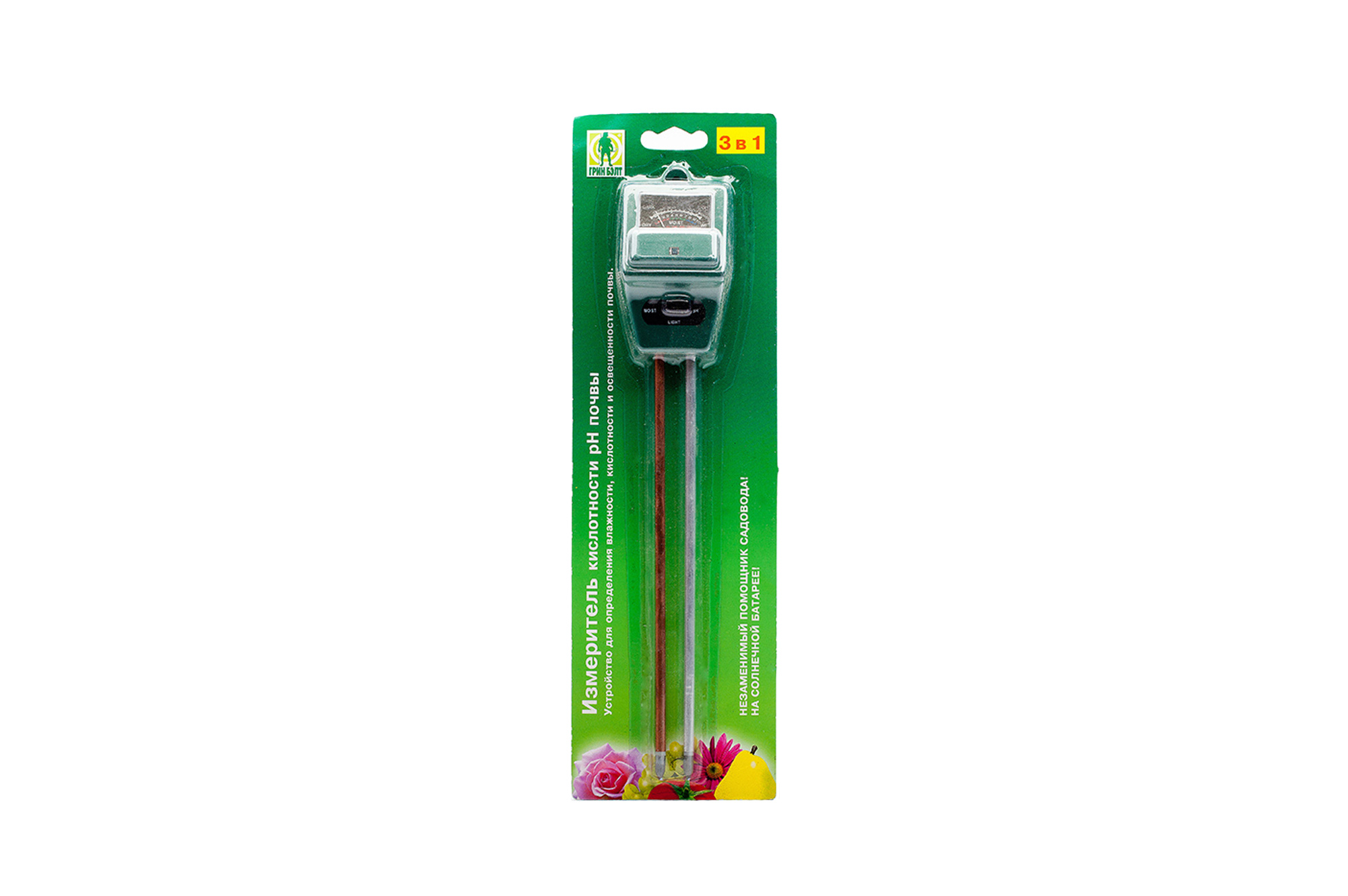 Универсальный прибор Грин Бэлт измеряет кислотность и влажность почвы, а также освещенность на этом участке. Это устройство «три в одном», которое будет полезно при любом способе растениеводства, от гроубоксов до открытого грунта. Разработан в России (компания