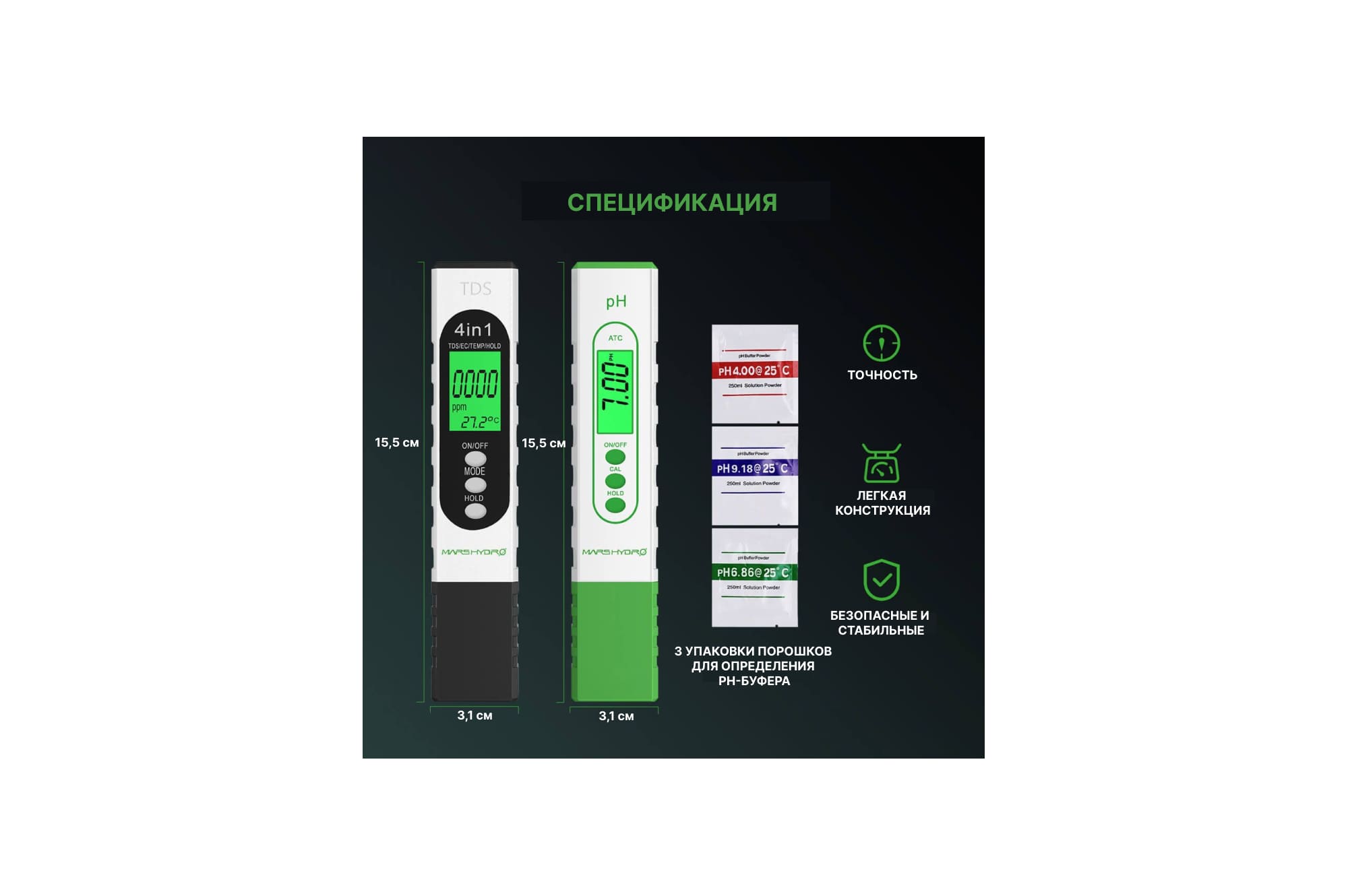 Использование pH и TDS метров Mars Hydro в комплекте обеспечит точное и удобное управление качеством растворов, что позволит максимизировать эффективность выращивания растений и поддерживать их здоровье. Эти приборы рекомендуются для использования в сочетании с качественными системами вентиляции и освещения,  светильниками и тентами Mars Hydro, создавая оптимальные условия для процветания растений.