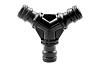 Разветвитель-тройник позволяет расширить область капельного полива, присоединив к поливочному шлангу дополнительные рукава. Изготовлен из пластика, не подвержен коррозии, не деформируется под давлением.
