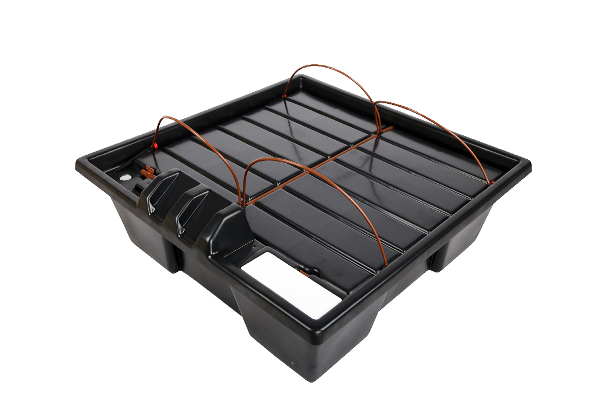 Praktica представляет собой квадратный бак с крышкой, которая одновременно является поддоном. Поддон имеет дренажный слив, ведущий в бак, и капельную линию. Раствор при помощи помпы подается из бака и увлажняет стоящие на поддоне емкости (Air Pot, GrowBag, минеральную вату и пр.) с растениями. Компрессор повышает количество кислорода в растворе.