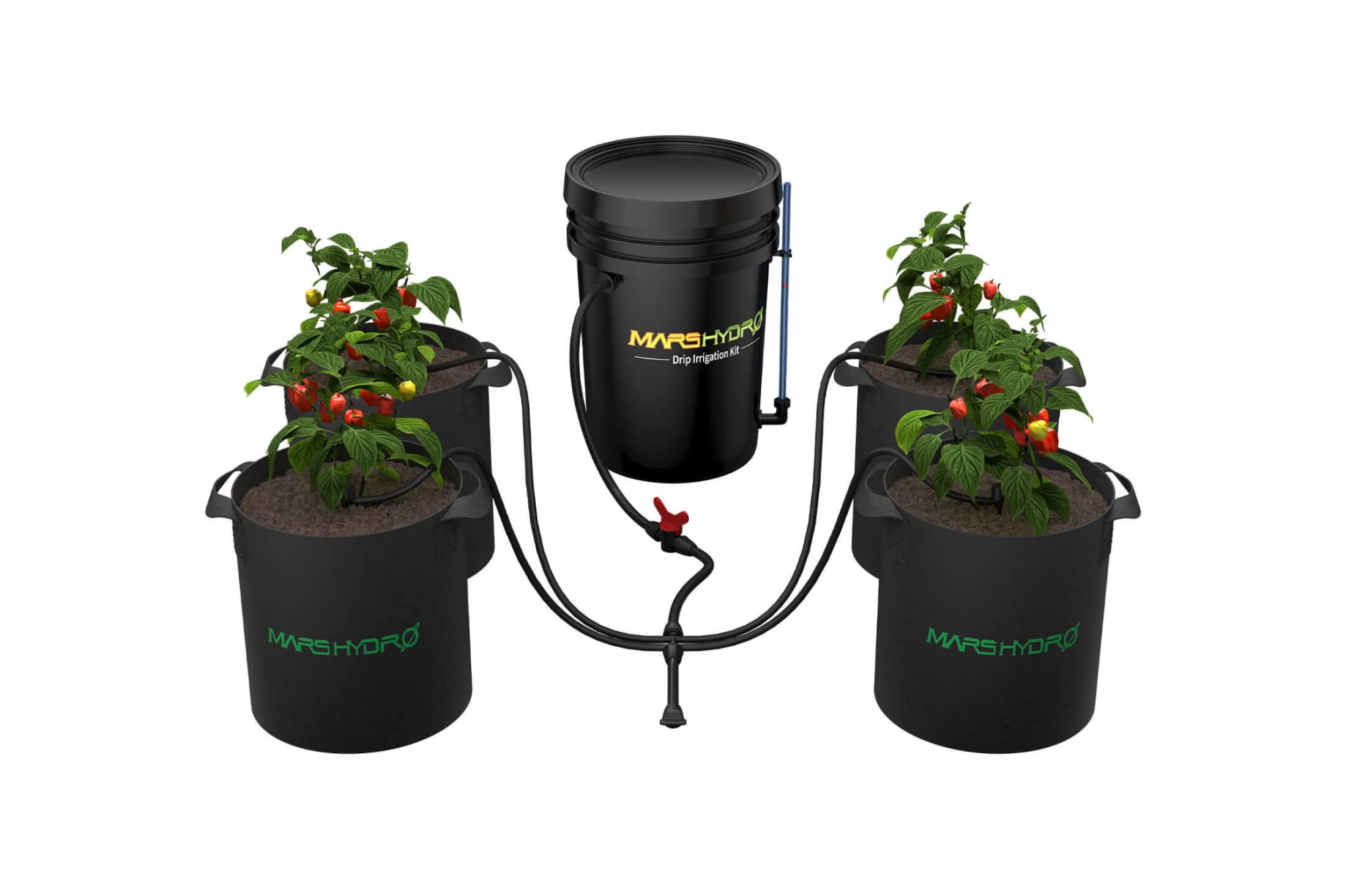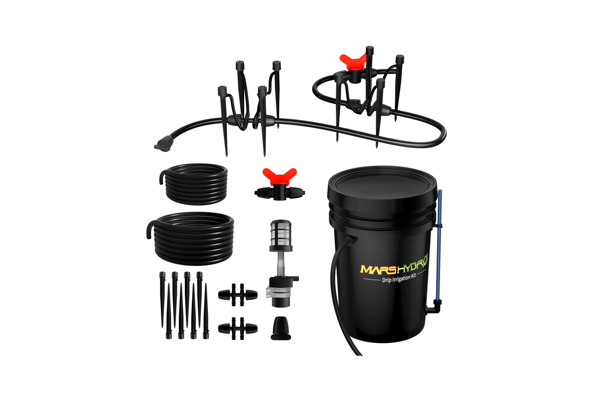 Mars Hydro Drip irrigation — это продвинутая система капельного полива, разработанная для использования в помещениях. Основное назначение системы — автоматизация процесса полива растений, что позволяет значительно улучшить условия их роста и развития. Система состоит из насоса мощностью 22 Вт с производительностью до 800 литров в час, двух типов трубок — длинной и короткой, восьми водораспределителей и ведра объемом 5 галлонов.