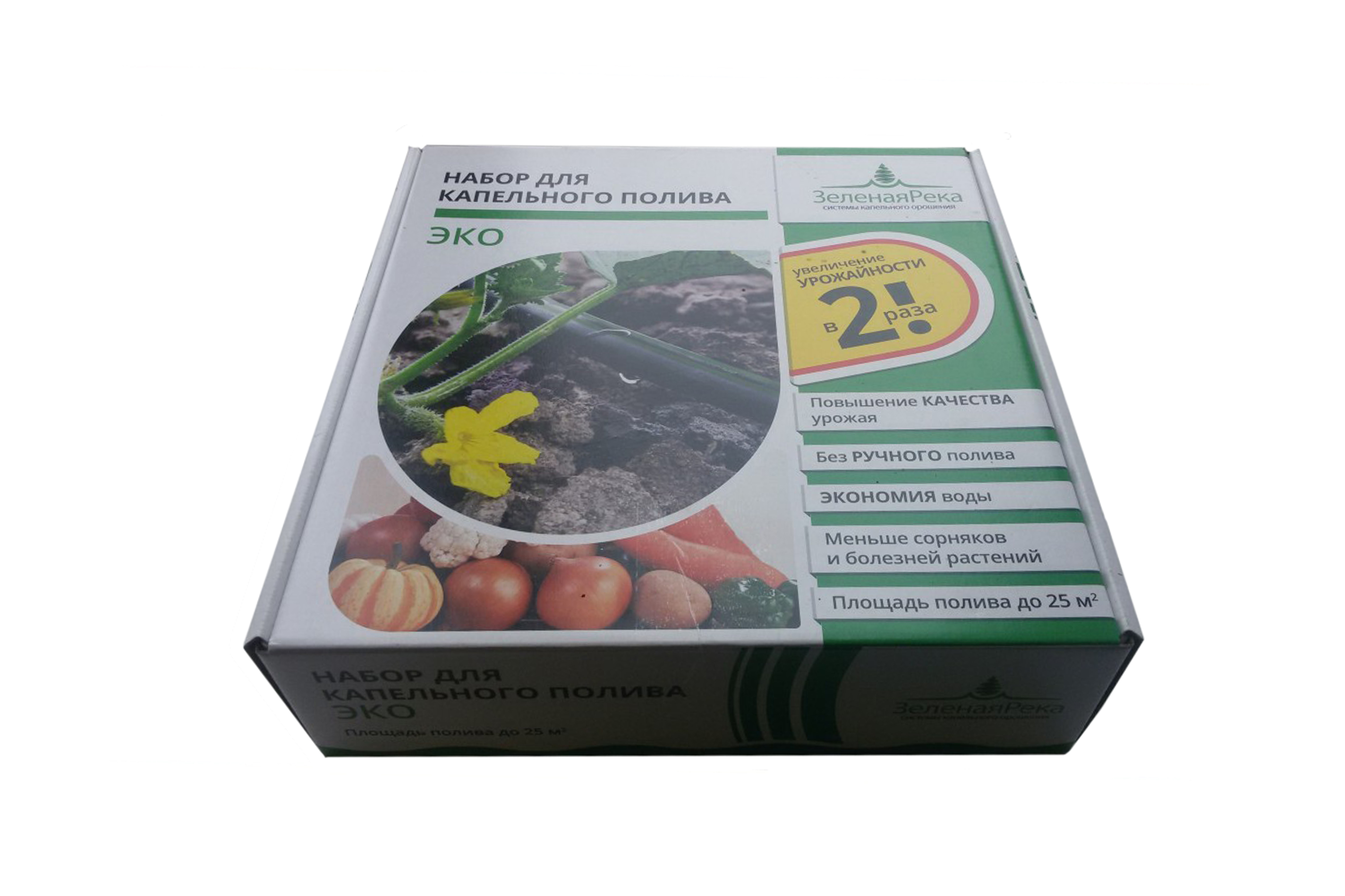 Этот набор для обустройства  системы  капельного орошения от российского производителя Зеленая Река предназначен для эксплуатации в теплицах площадью от 12 до 18 кв.м.