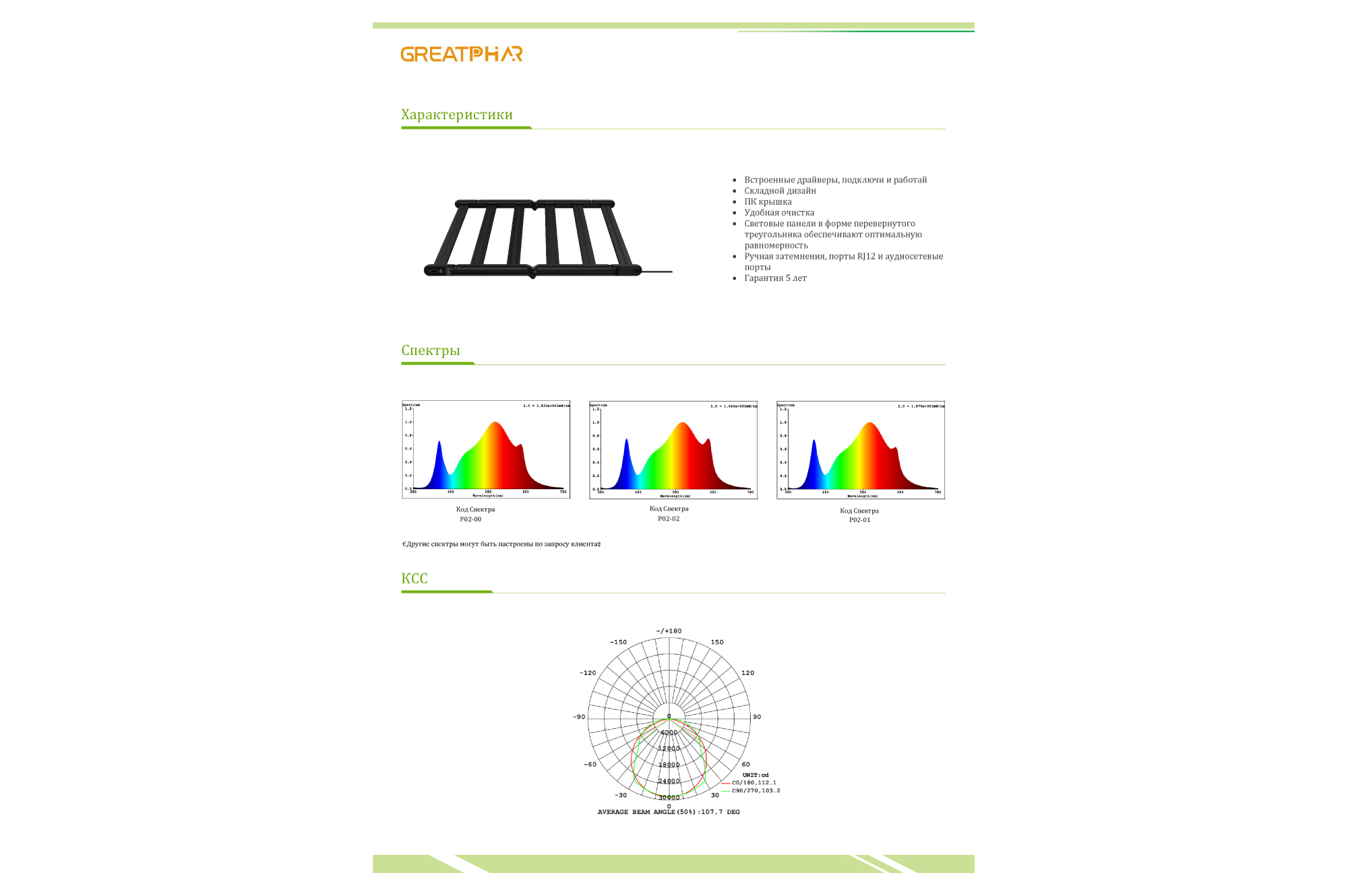 • Спектр: Полный световой спектр, включая красный, синий и белый диапазоны, имитирует естественный солнечный свет.