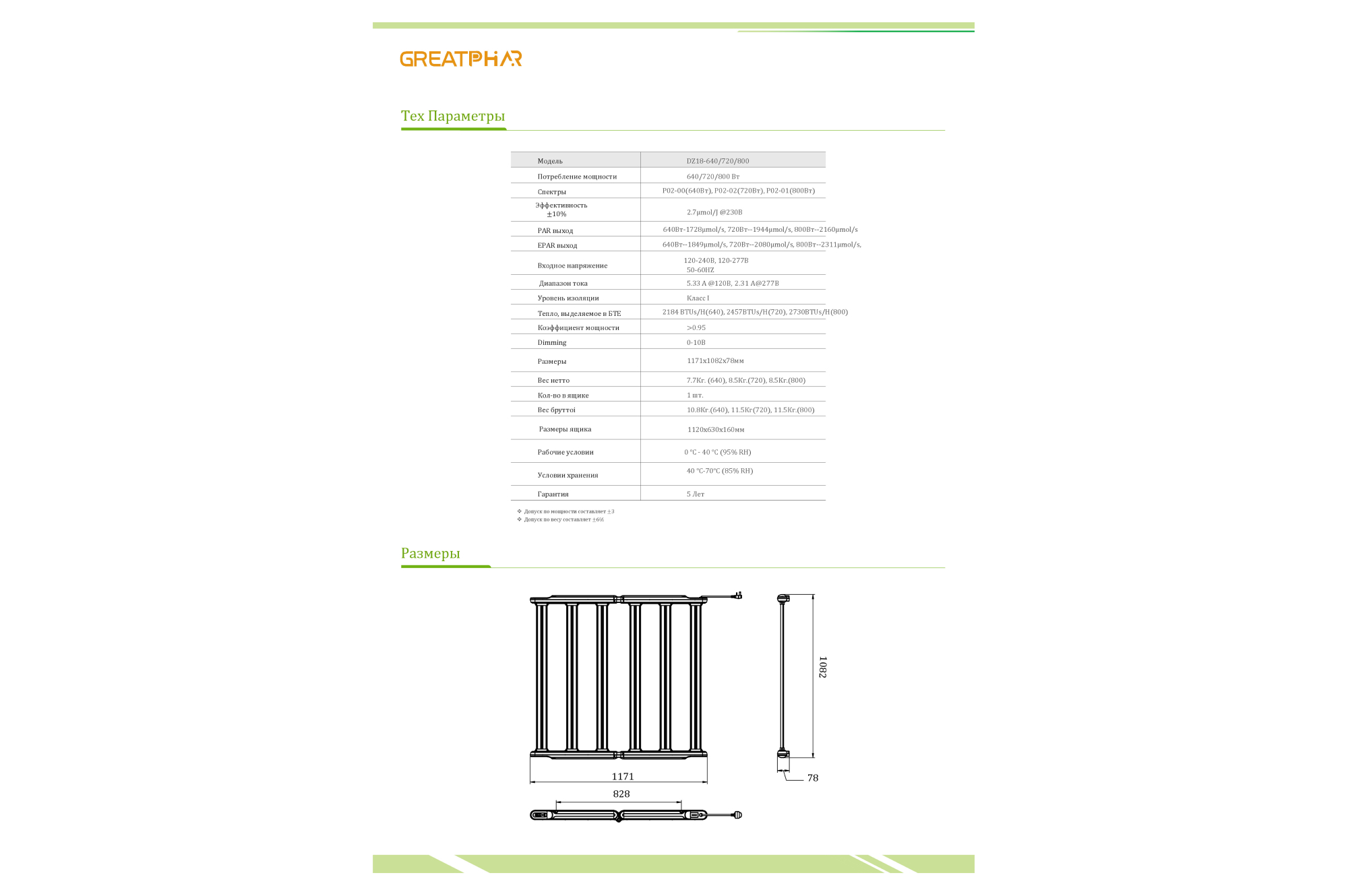 LED-светильник GreatPhar LED DZ18 800 Вт представляет собой передовое технологическое решение для профессионального и любительского растениеводства. Эта модель обеспечивает максимально эффективное освещение для растений, поддерживая их рост и развитие на всех этапах жизненного цикла.