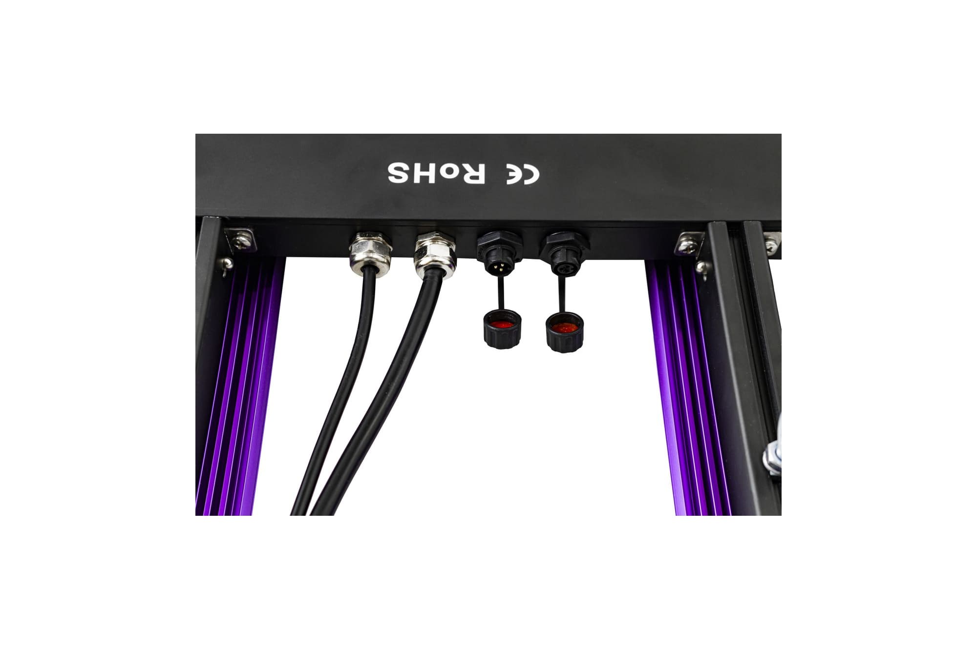 Lumatek Led ZEUS 600 Вт PRO подключается к сети 220/380 В и подвешивается на металлические тросики. Последнее позволяет легко варьировать высоту подвеса с учетом количества и габитуса выращиваемых растений и их фазы роста. Кстати, световую панель можно подвешивать над растениями в интервале от 15 до 150 см, так как она формирует равномерный световой поток без «горячих» точек.