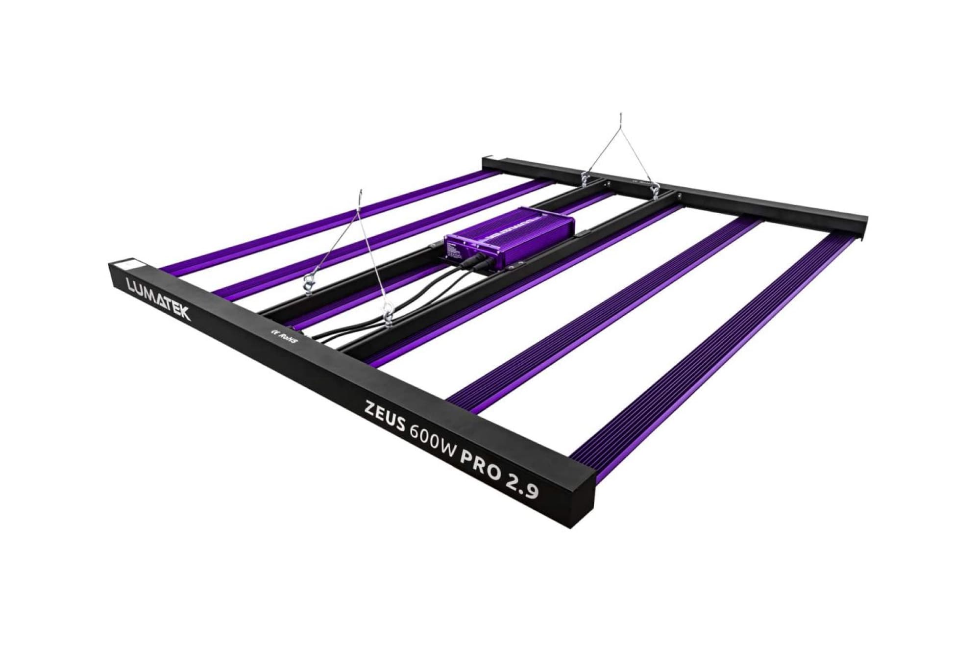 Модель Lumatek Led ZEUS 600 Вт PRO имеет самоохлаждающуюся конструкцию из шести Led ламелей, управляемых диммером на 25, 50, 75 и 100% мощностного потенциала. Световая панель создана на основе Osram и Lumileds – высококачественных светодиодов. Их общее количество составляет 144 диода, они имеют срок службы в пределах 60 000 часов и генерируют световой поток универсального спектра Full Spectrum F, максимально приближенного к естественному солнечному свету. Дайвер Lumatek надежно защищает светодиоды от перепадов напряжения и токов к.з. и обеспечивает их стабильную работу на всем сроке службы. Фитосветильник имеет высокий класс водо- и пылезащищенности и прекрасно переносит специфические условия гровинга – повышенную влажность, наличие в воздухе пыльцы и прочих взвешенных частиц.