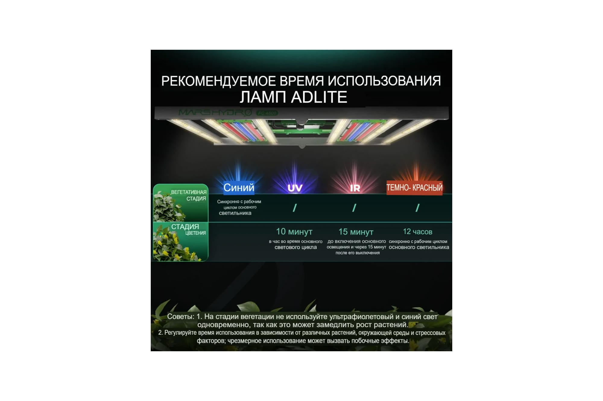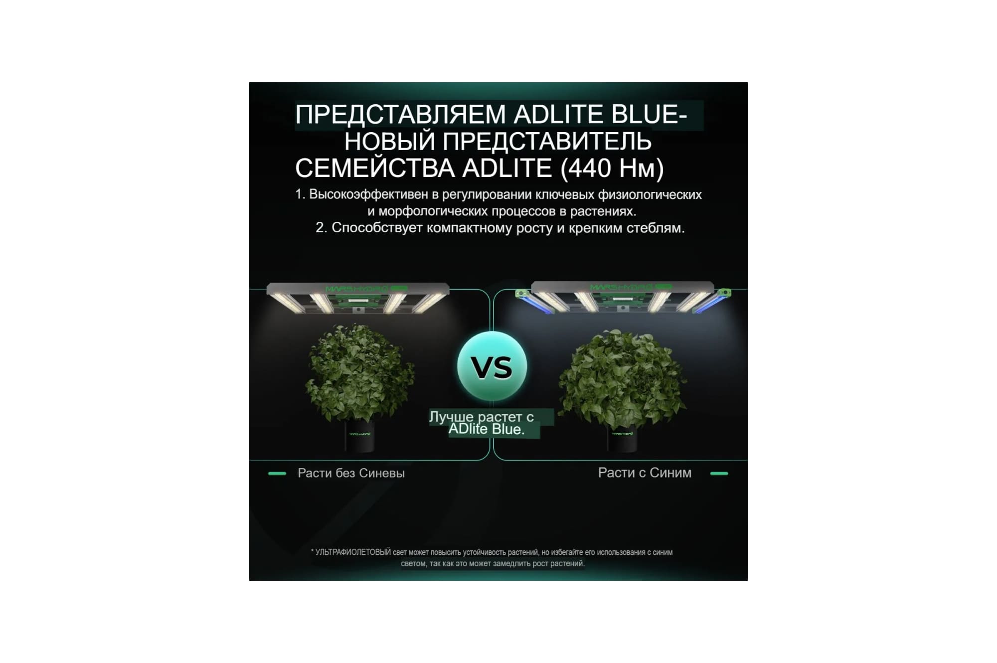 Уникальное сочетание ультрафиолетового и инфракрасного спектров в одном решении делает этот продукт настоящим прорывом в сфере растительного света.