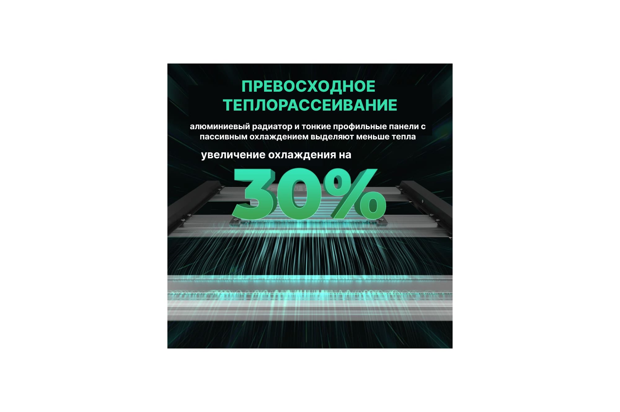 Эффективная система теплоотвода, включающая алюминиевый радиатор и тонкие планки, снижает тепловыделение и позволяет экономить до 50% электроэнергии по сравнению с традиционными HID-лампами.
