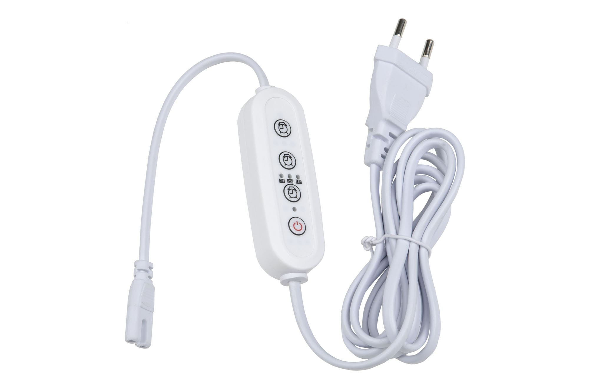 Таймер UST-E32 от производителя Uniel с с вилкой и разъемом L/N  - прибор для подачи и контроля света в фитосветильниках. Модель получила 2-х метровый провод,  корпус из надежного крепкого пластика (цвет - белый)  и стандартную вилку для розетки с выходным напряжением в 220 В. На корпусе расположены 3 кнопки для разных временных режимов и 1 кнопка для включения/выключения прибора. Таймер UST-E32  рассчитан на общий срок службы - 30 000 часов. Поставляется в упаковке размеров 80*24*15 мм.  Срок годности (при соблюдении условий хранения) не ограничен. Гарантия от производителя  - 24 месяца.