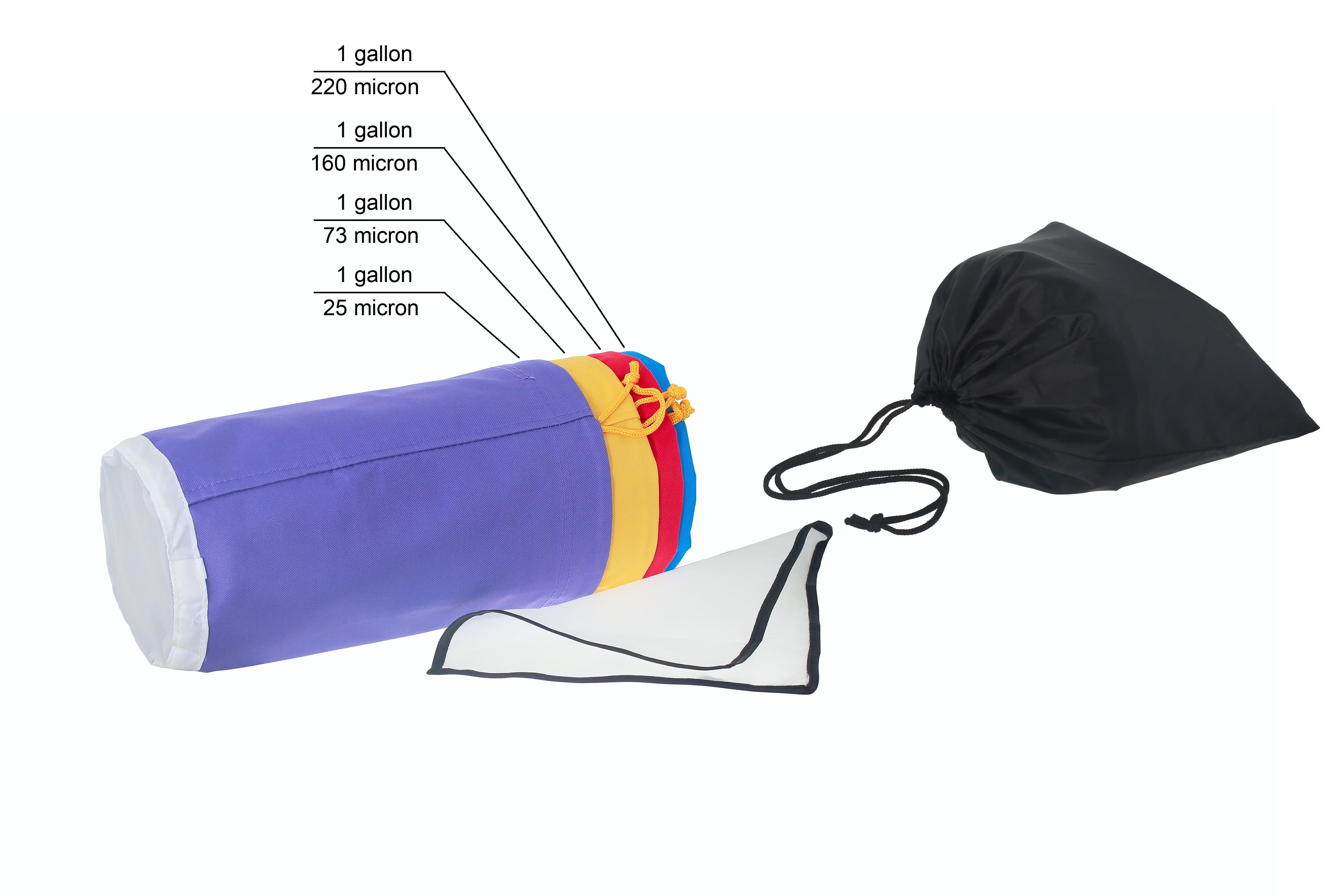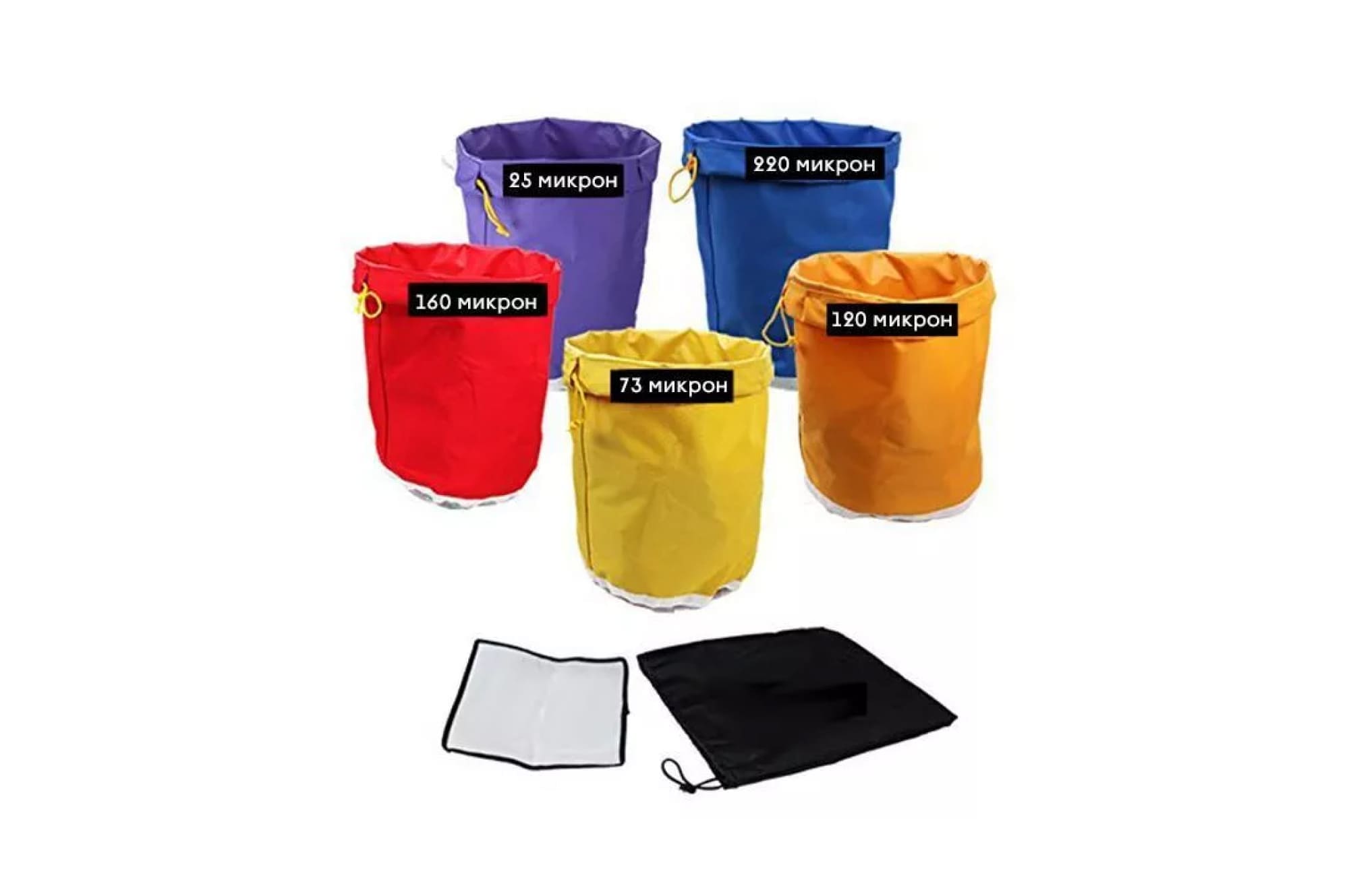 Фильтрационные мешки объемом 18.9 л на 5 галлонов предназначены для получения концентрированных эфирных масел из сыпучего сырья. Используются в процессе переработки растений методом ледяной экстракции. Плюсы такого способа – использование только воды, льда и мешков, без добавления химикатов, препаратов синтетического происхождения. В комплект входят 5 мешков из 100% полиэстера – материала на основе хирургической мононити. Преимущества – безопасность для здоровья, высокая прочность, устойчивость к температурному, химическому, биологическому разрушению. Основание каждого пакета – сито для отжима. Экран высокой плотности выдерживает рабочее давление до 5 атмосфер. Каждый цвет чехла соответствует размерам ячеек – 25, 73, 125, 160, 220 микрон. Универсальный набор подходит как для первичной грубой очистки, так и для получения кристаллов высокого качества. Для фиксации предусмотрен регулирующийся шнурок. Достоинства набора фильтрационных мешков на 5 галлонов: •    выбор нужного размера для фильтрации; •    простота применения; •    получение экологически чистого продукта на выходе; •    прошитые и проклеенные швы; •    многоразовое использование; •    удобная сумка для хранения; •    длительный срок службы.