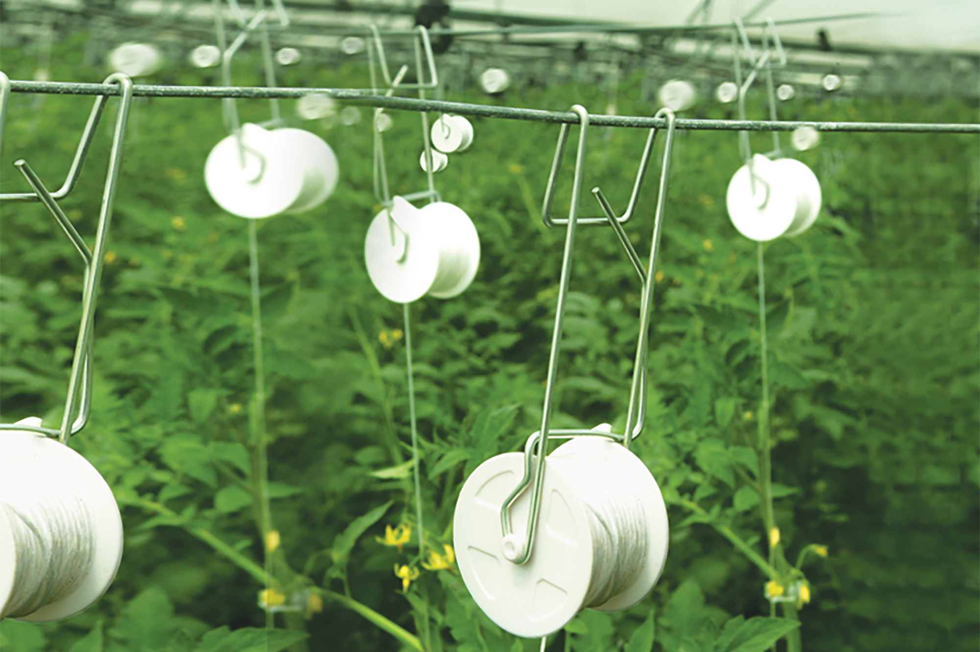 Принцип действия аналогичен катушке: на прочное полимерное основание намотана упругая, не склонная к растяжениям и деформациям, лента. Ее свободный закрепляется на растении, а сам ролик за счет крепкого фиксирующего элемента из нержавеющей проволоки подвешивается к раме или другой опорной поверхности. По мере роста стебля свободная лента наматывается на ролик, обеспечивая необходимую длину.