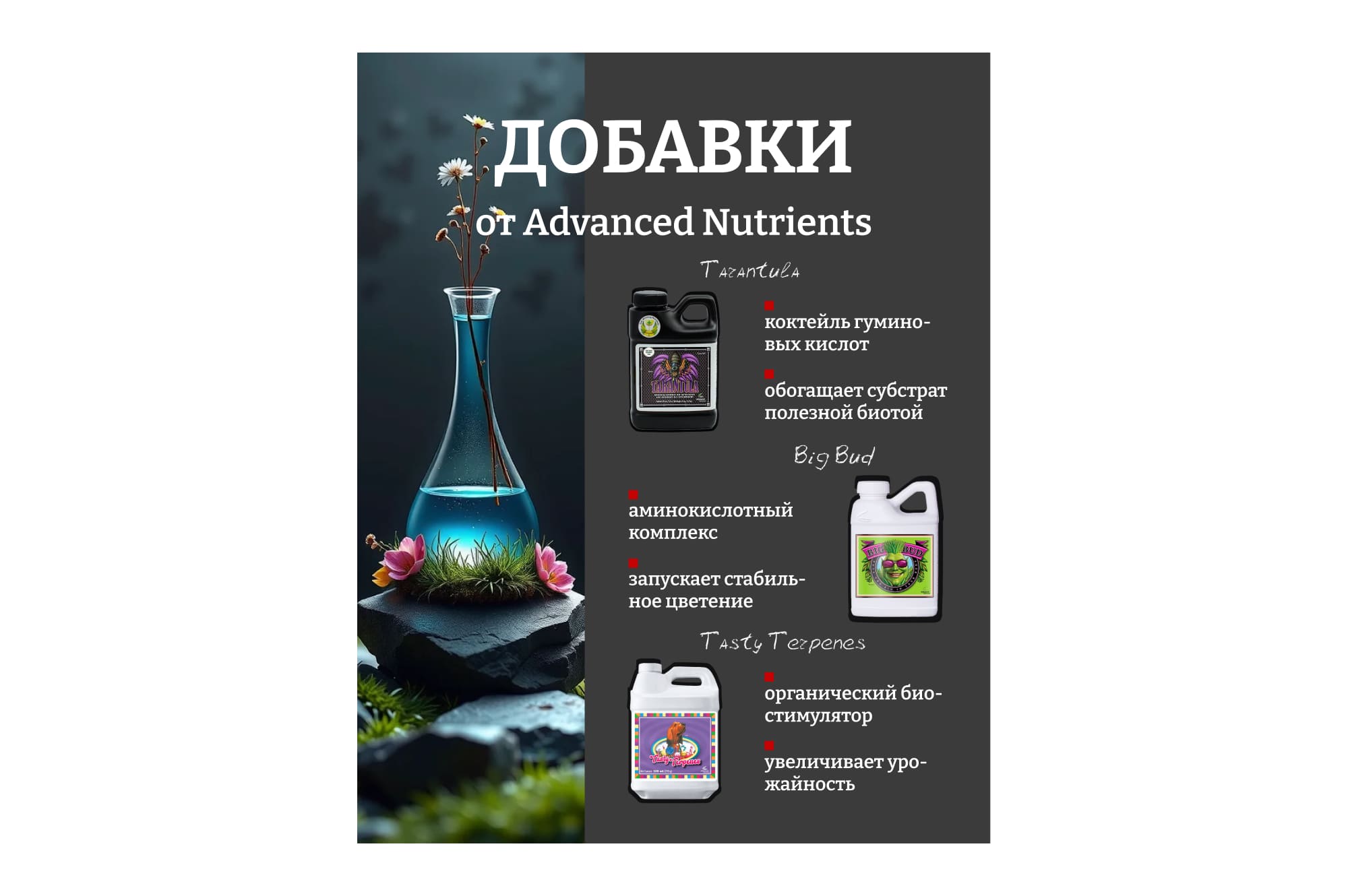Максимальная концентрация полезных веществ упраздняет наличие балластных составляющих и позволяет обеспечить растение необходимой подпиткой минимальным количеством стимулятора.
