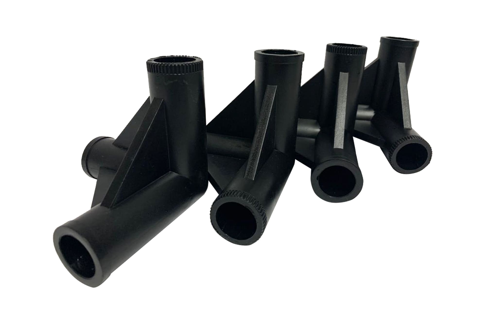 Изделия выполнены из АБС пластика черного цвета. Полимер отличается высокими эксплуатационными свойствами, безопасностью (отсутствие испарений летучих органических веществ). Жесткость материала исключает люф конструкции (зазоры между прилегающими элементами конструкции).
