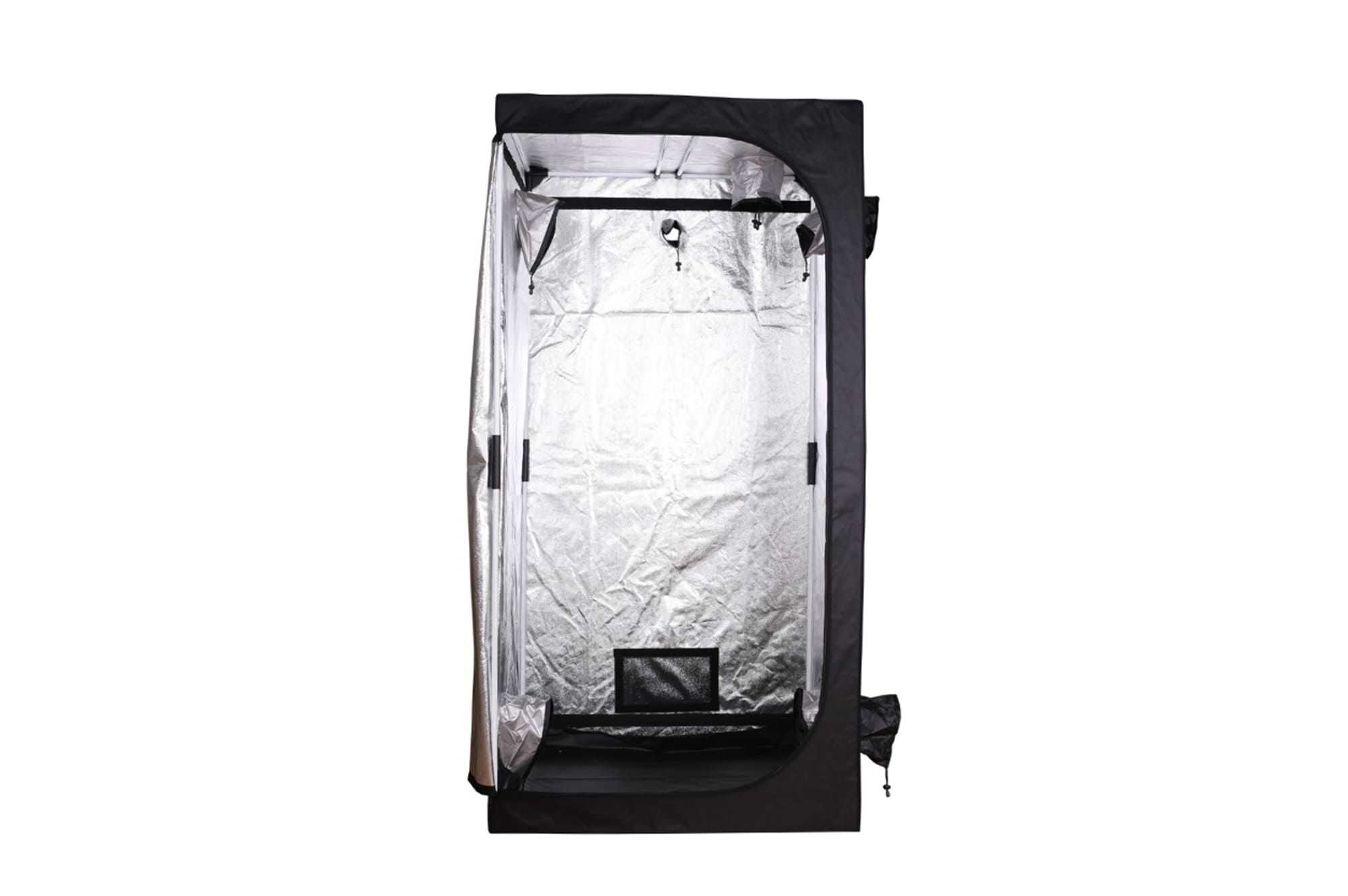 Устройство палатки (гроубокса) продумано до мелочей. Удобный уход за растениями обеспечивает большая дверь в передней части, закрывающаяся на надежную молнию. Для проветривания можно использовать также застегивающееся на молнию окно наверху.