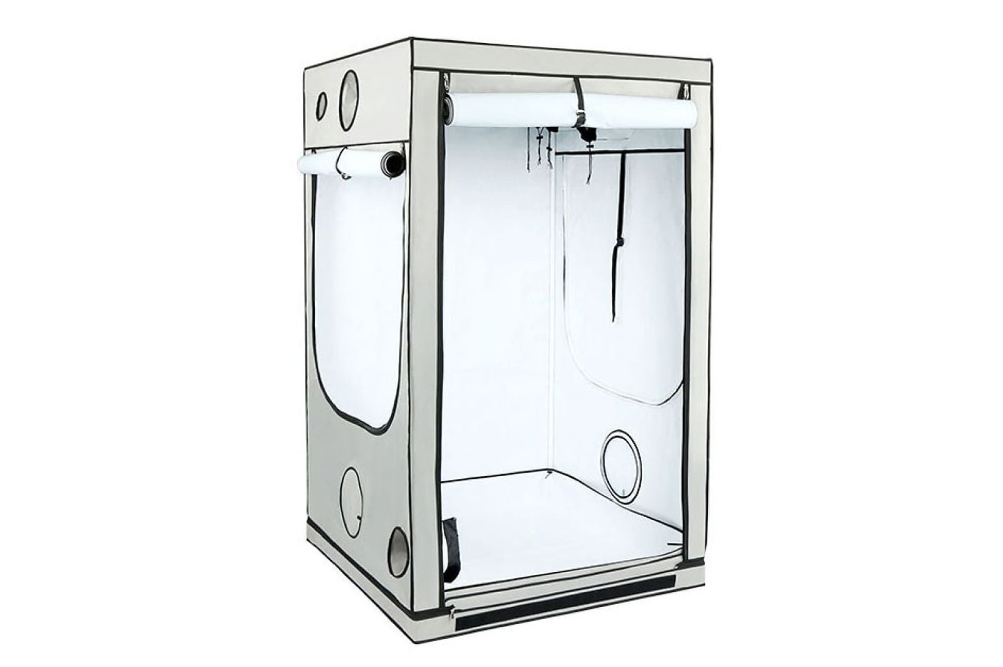 Комплектация модели предполагает наличие рукавов ввода/вывода с боковых сторон и сзади, а также вентиляционных окошек с регулировкой, расположенных справа и слева. Днище модели – съемного типа, изготовлено из водонепроницаемой ткани. Использование специальных герметичных молний обеспечивает в закрытом состоянии гроутента абсолютную светонепроницаемость и теплоемкость.
