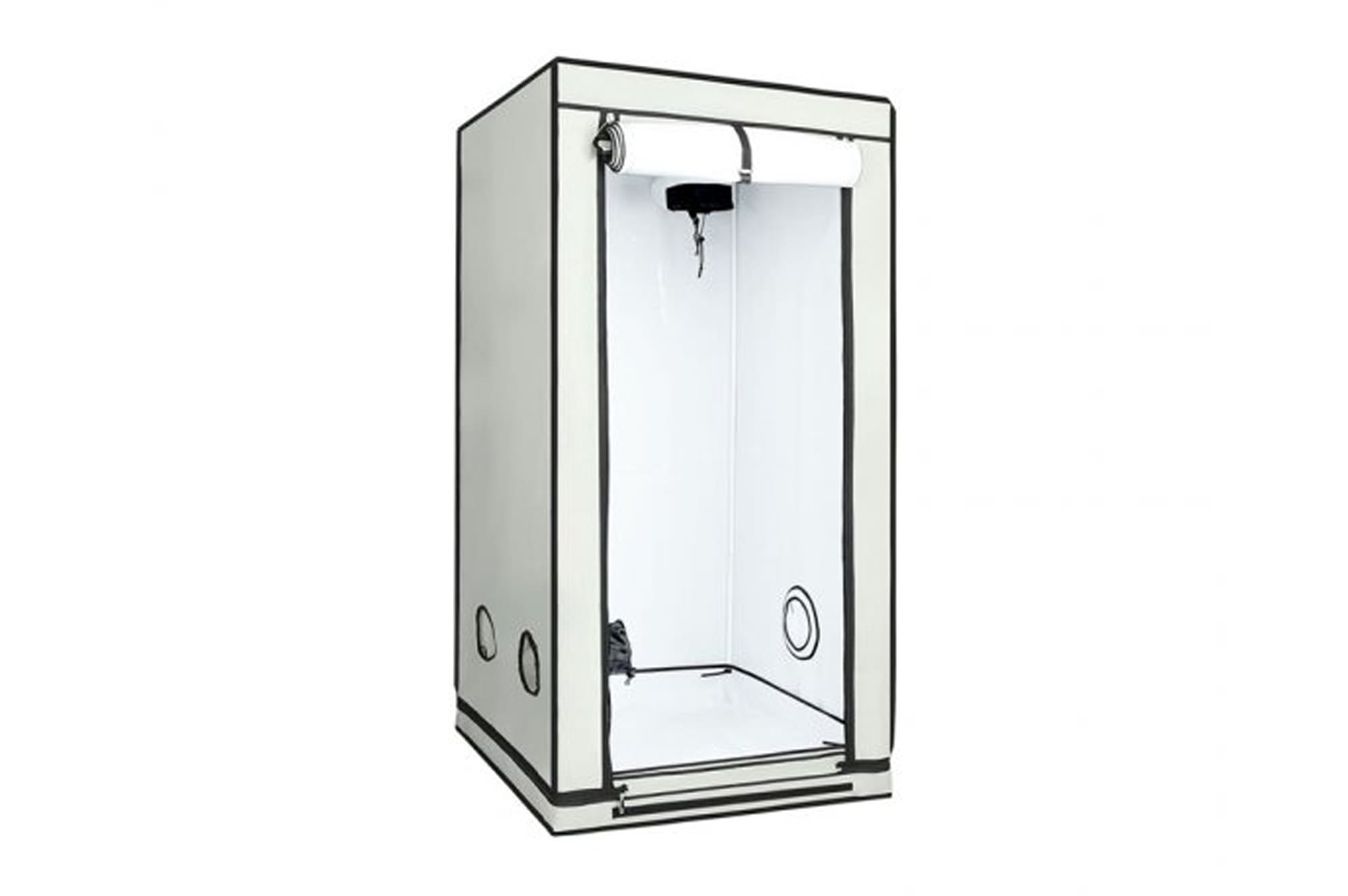Сборка начинается с монтажа каркаса, состоящего из направляющих металлических труб и уголков. Затем на каркаса натягивается полотно, части которого скрепляются между собою при помощи замков. Гроубокс — готов, осталось установить освещение, систему вентиляции и таймер.