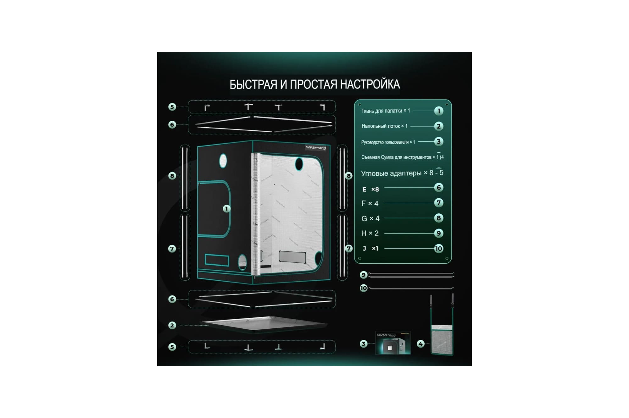 Герметичная ткань Oxford 1680D не пропускает свет и влагу, создавая контролируемую среду внутри бокса. Установка эффективной системы вентиляции — например, на базе 6-дюймового вентилятора и угольного фильтра — обеспечит стабильный воздухообмен, контроль температуры и устранение запахов. Удобные смотровые окна, съёмный поддон и внутренние органайзеры делают работу с палаткой интуитивно понятной и приятной.