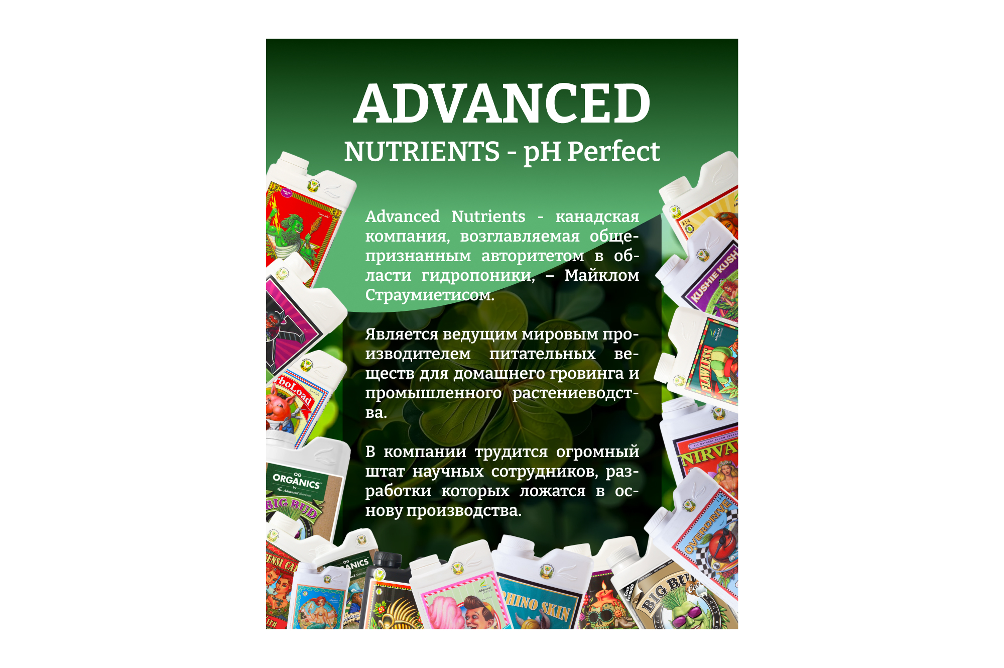 Общий, аммиачный и нитратный азот, формула NPK, компоненты магния, серы, кальция, железа, чистого фосфата и другие элементы содержатся в сбалансированном виде и легкоусвояемой форме.