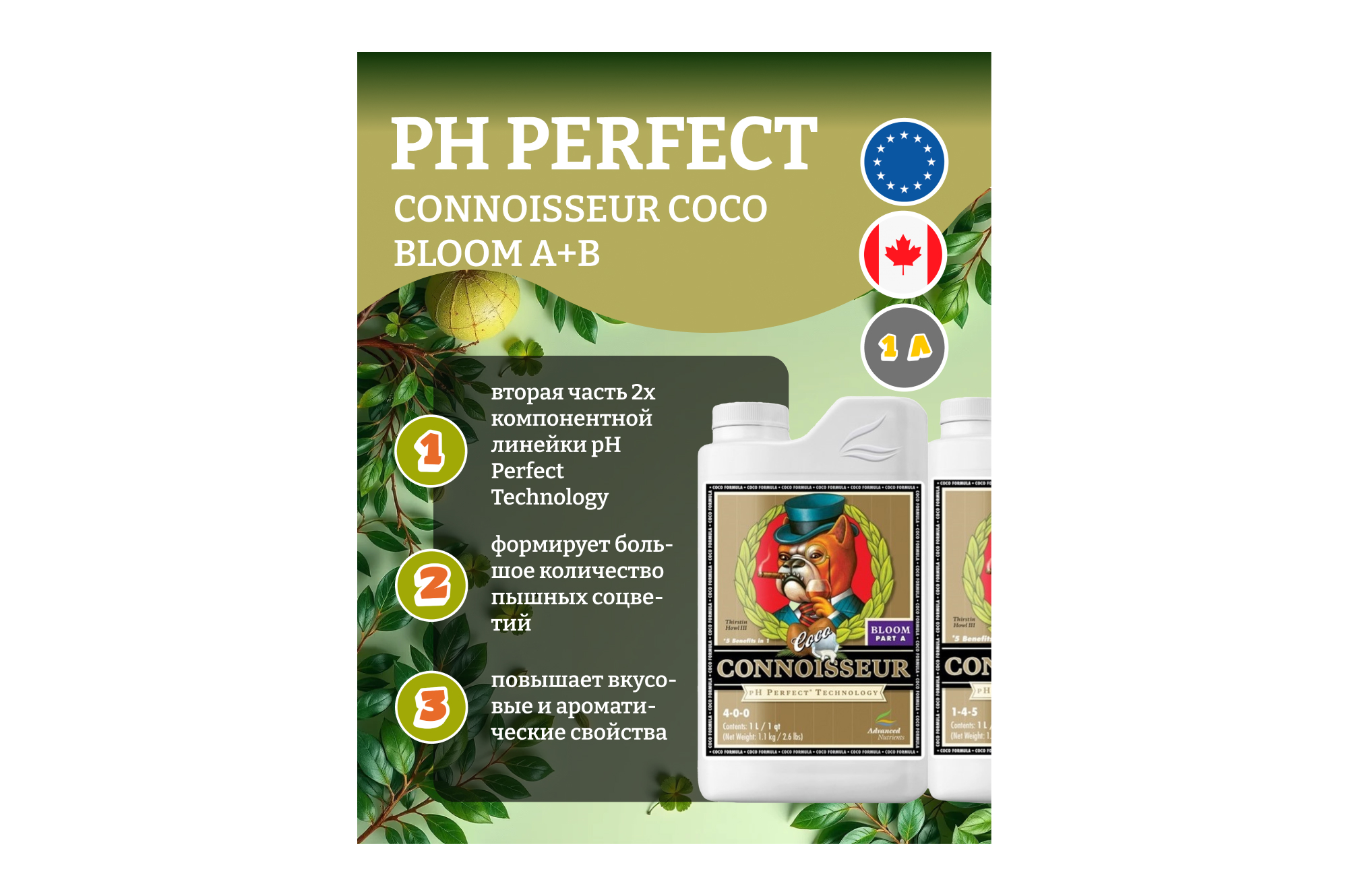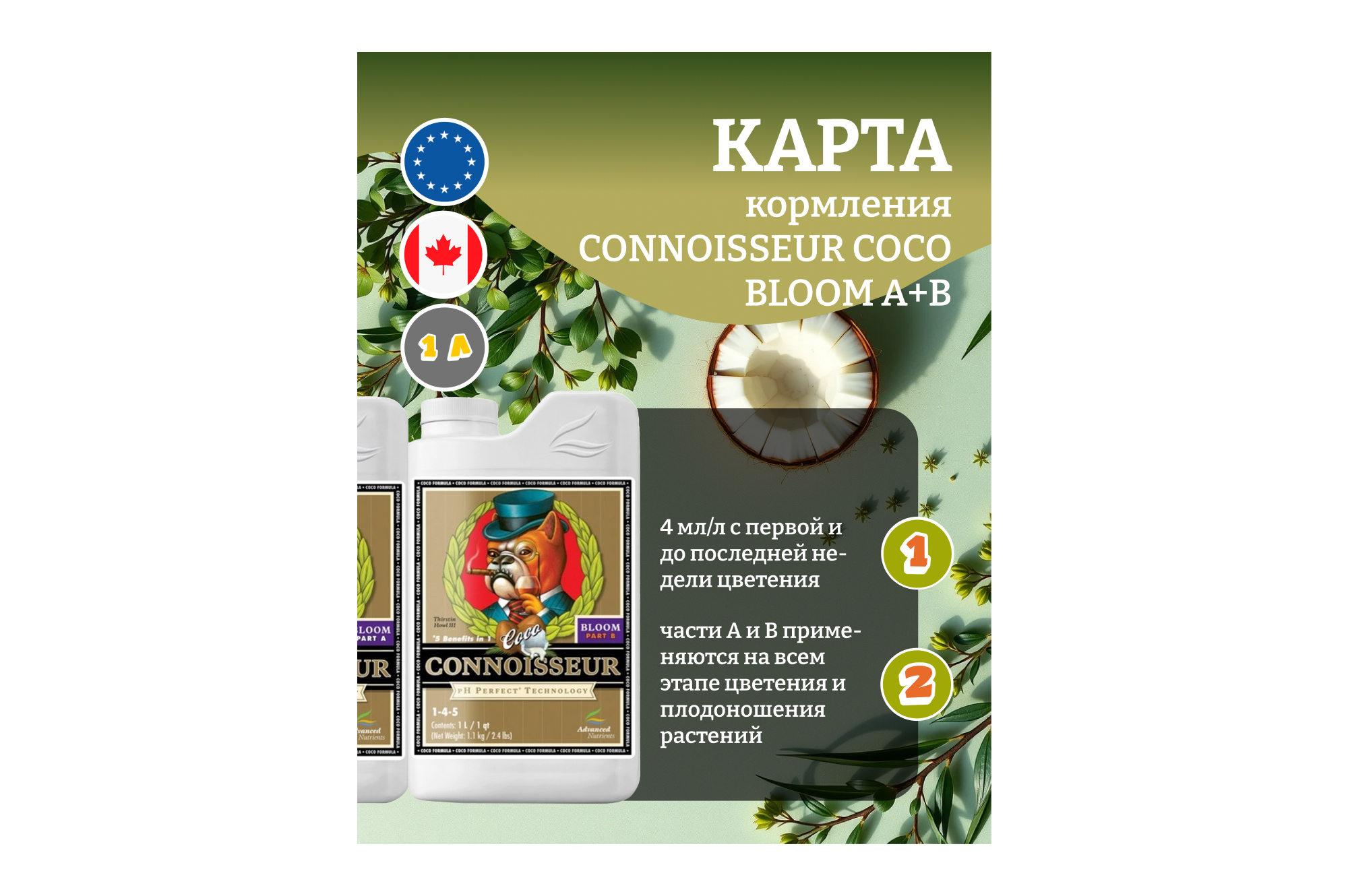Польза Advanced Nutrients Connoisseur COCO Bloom A+B для растительных культур очевидна сразу в нескольких аспектах: