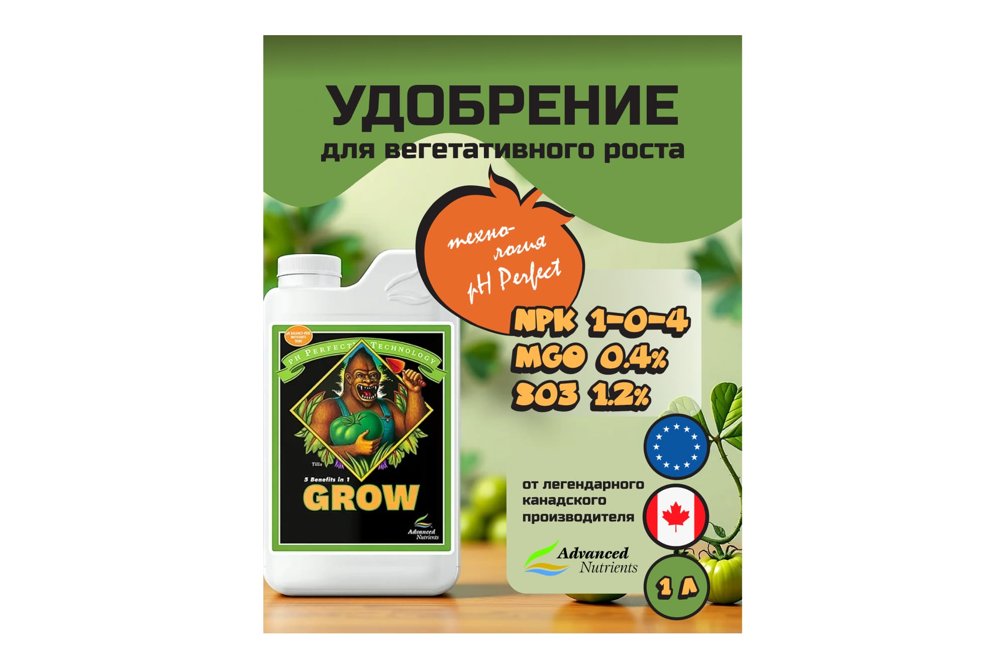 Серия удобрений pH Perfect – это набор из трёх компонентов, который снабжает растения необходимыми питательными веществами и нормализует кислотно-щелочной баланс в почве или питательной среде. Полезное действие препарата отмечается на всех этапах жизненного цикла растения. Препарат является одним из трёх компонентов, которые, по технологии pH Perfect, применяются при уходе за растениями во взаимном сочетании. Компонент Grow содержит набор веществ, которые наиболее востребованы растением при росте и развитии.