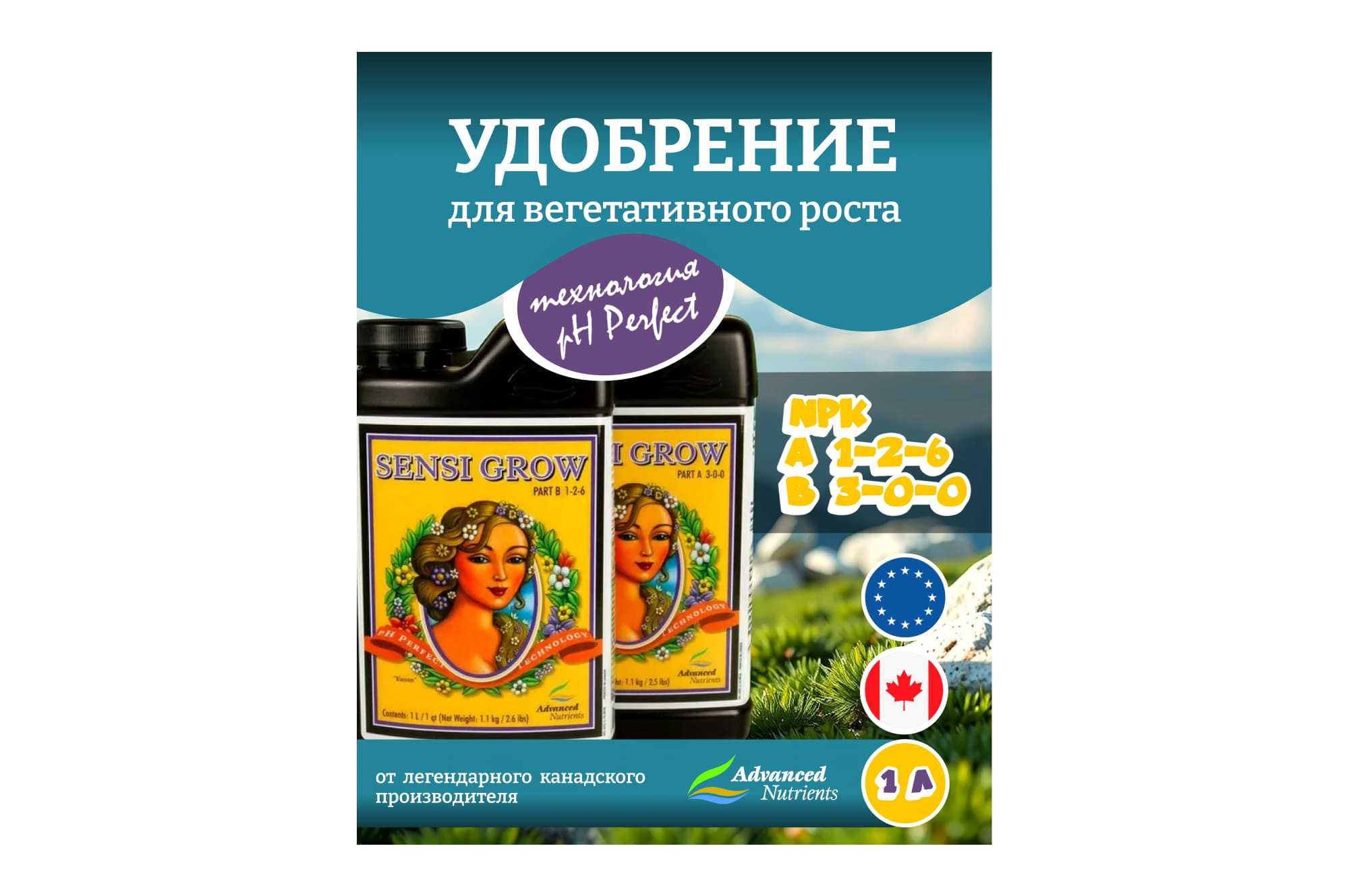 Базовая питательная система pH Perfect Sensi Grow Parts A & B, которая включает в себя 2 средства и повышает в течение всей вегетативной стадии потенциал культуры. Это один из самых простых и популярных усилителей от бренда Advanced Nutriens.