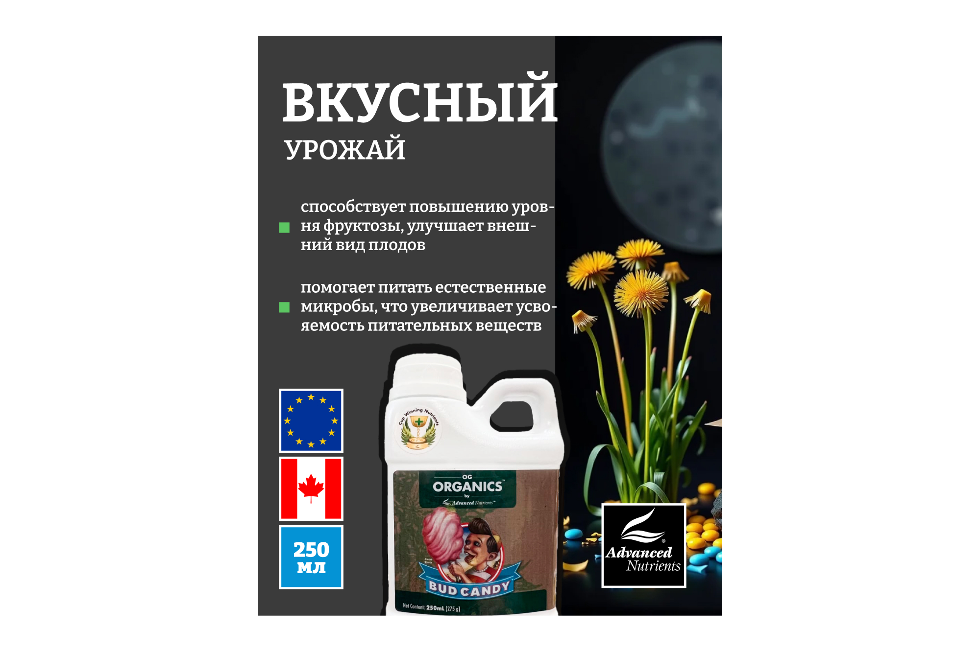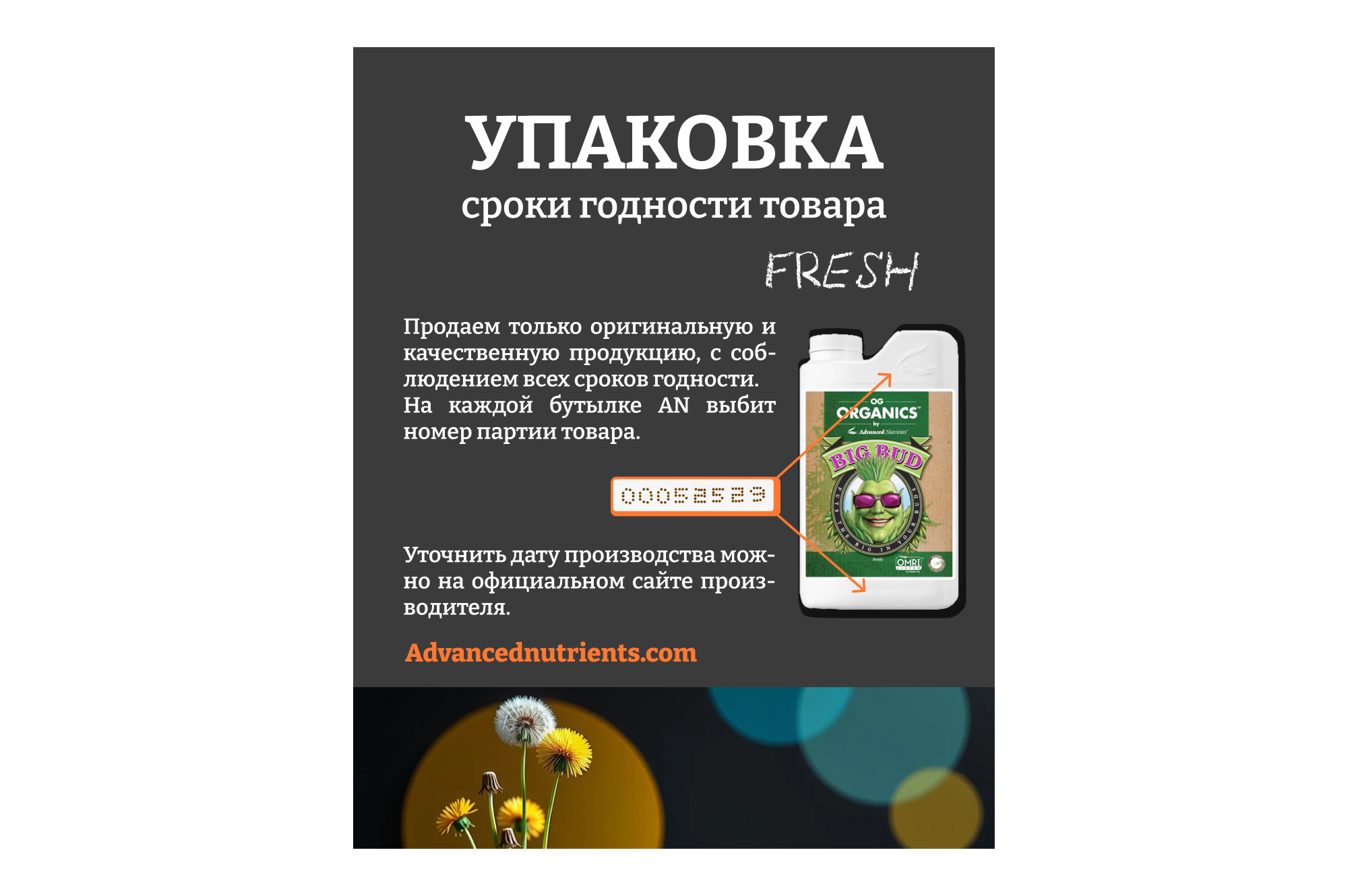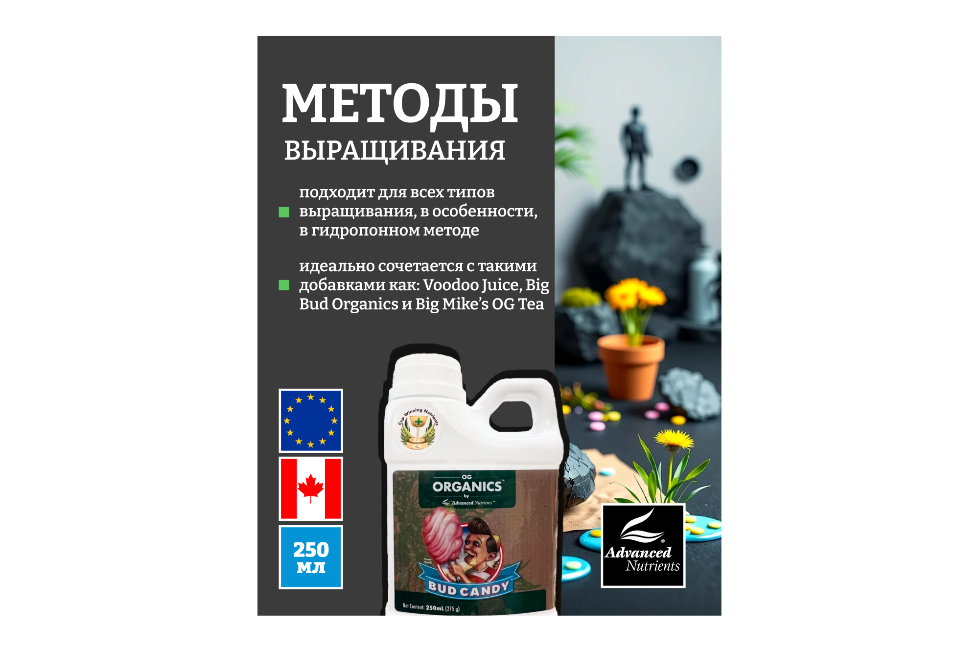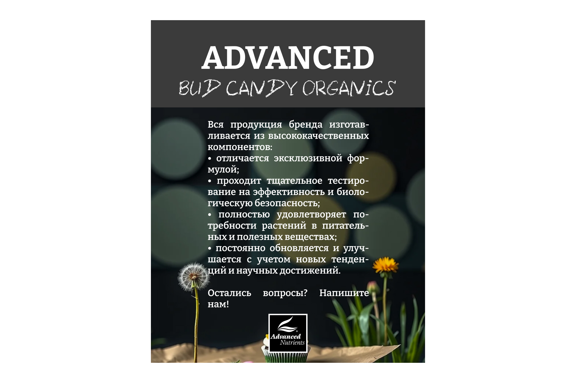 ПРИМЕЧАНИЕ: В Advanced Nutrients не используется паклобутразол, даминозид или любые другие запрещенные регуляторы роста растений.