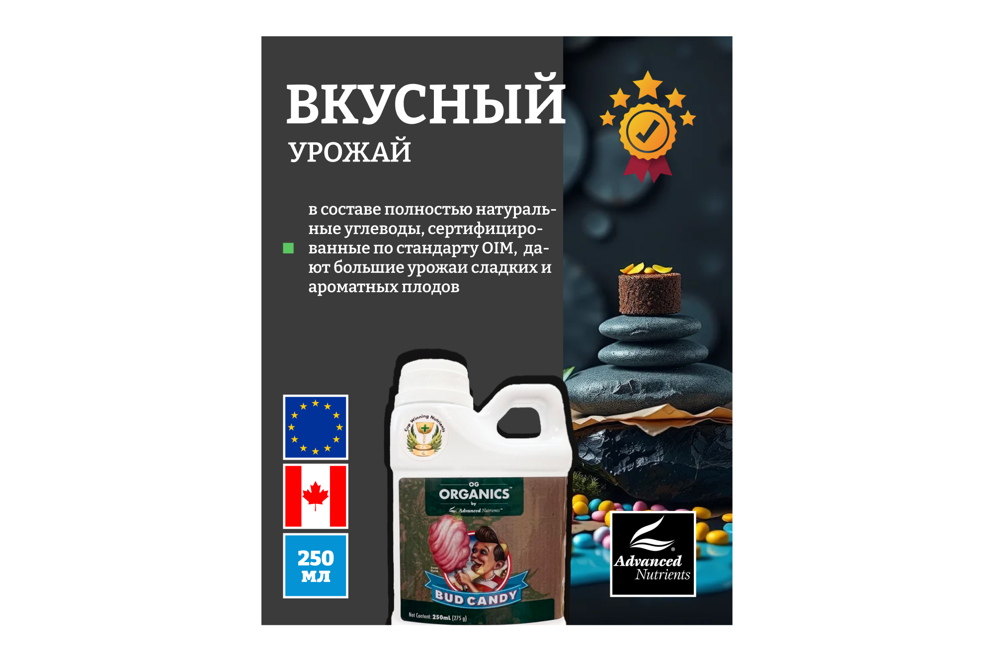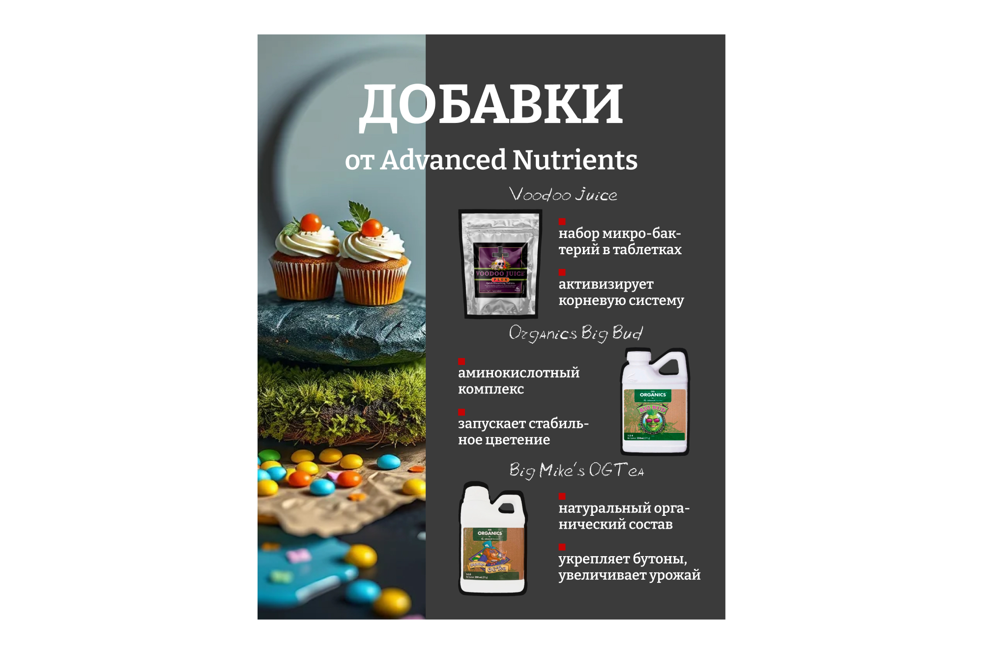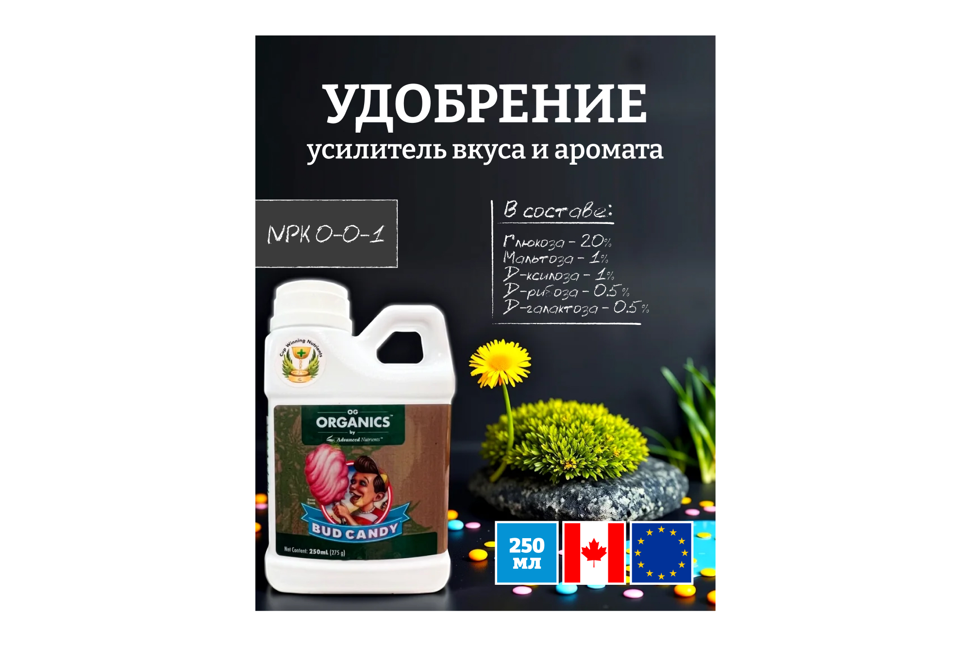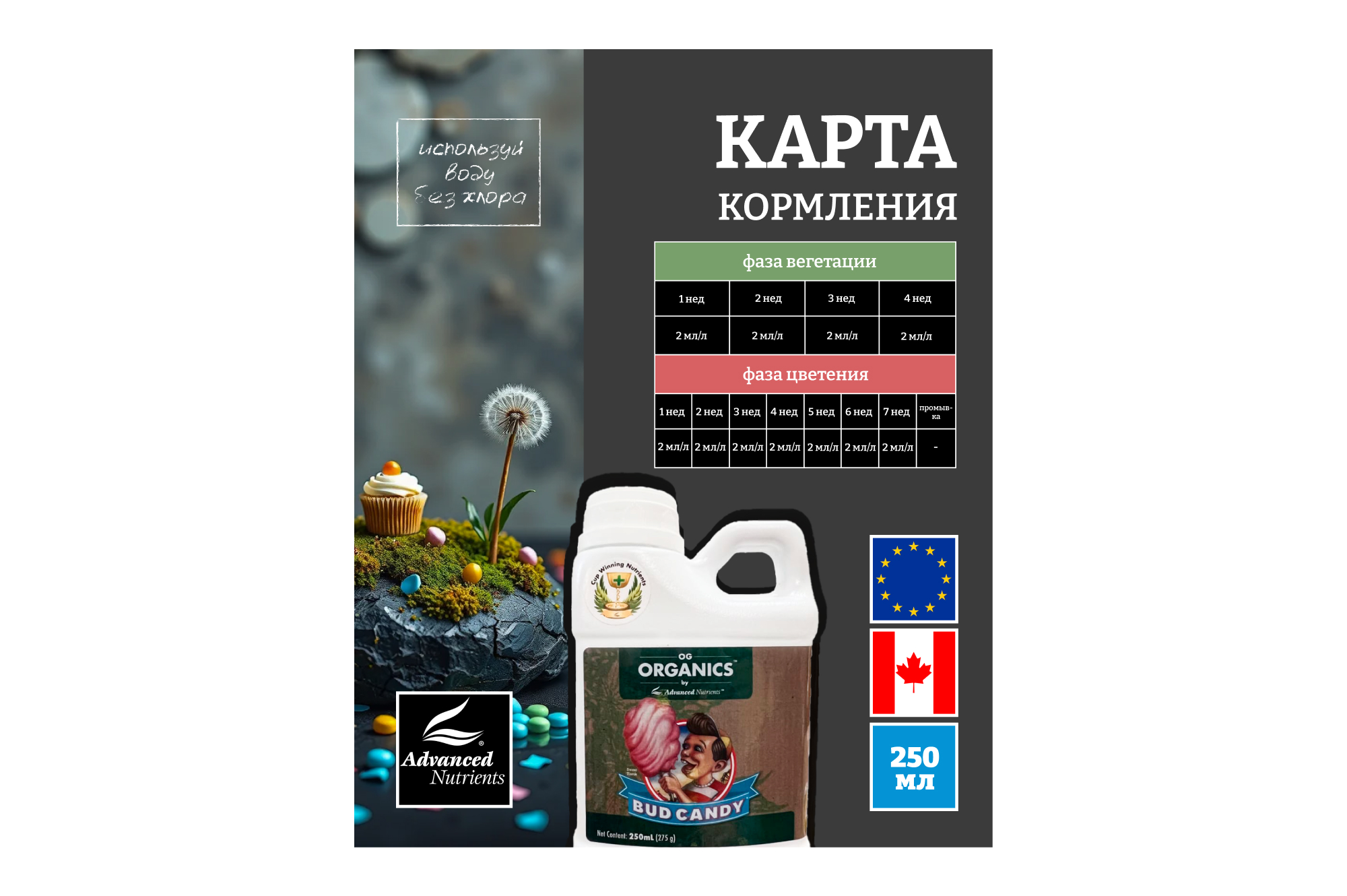 ВНИМАНИЕ: OG Organics™ Bud Candy® полностью совместим со всеми базовыми питательными веществами с идеальным уровнем pH, а также со всеми базовыми питательными веществами и добавками, отличными от pH Perfect, и со всеми базовыми питательными веществами и добавками конкурентов.