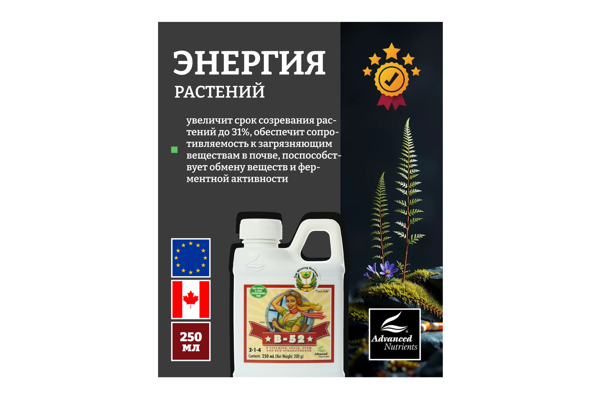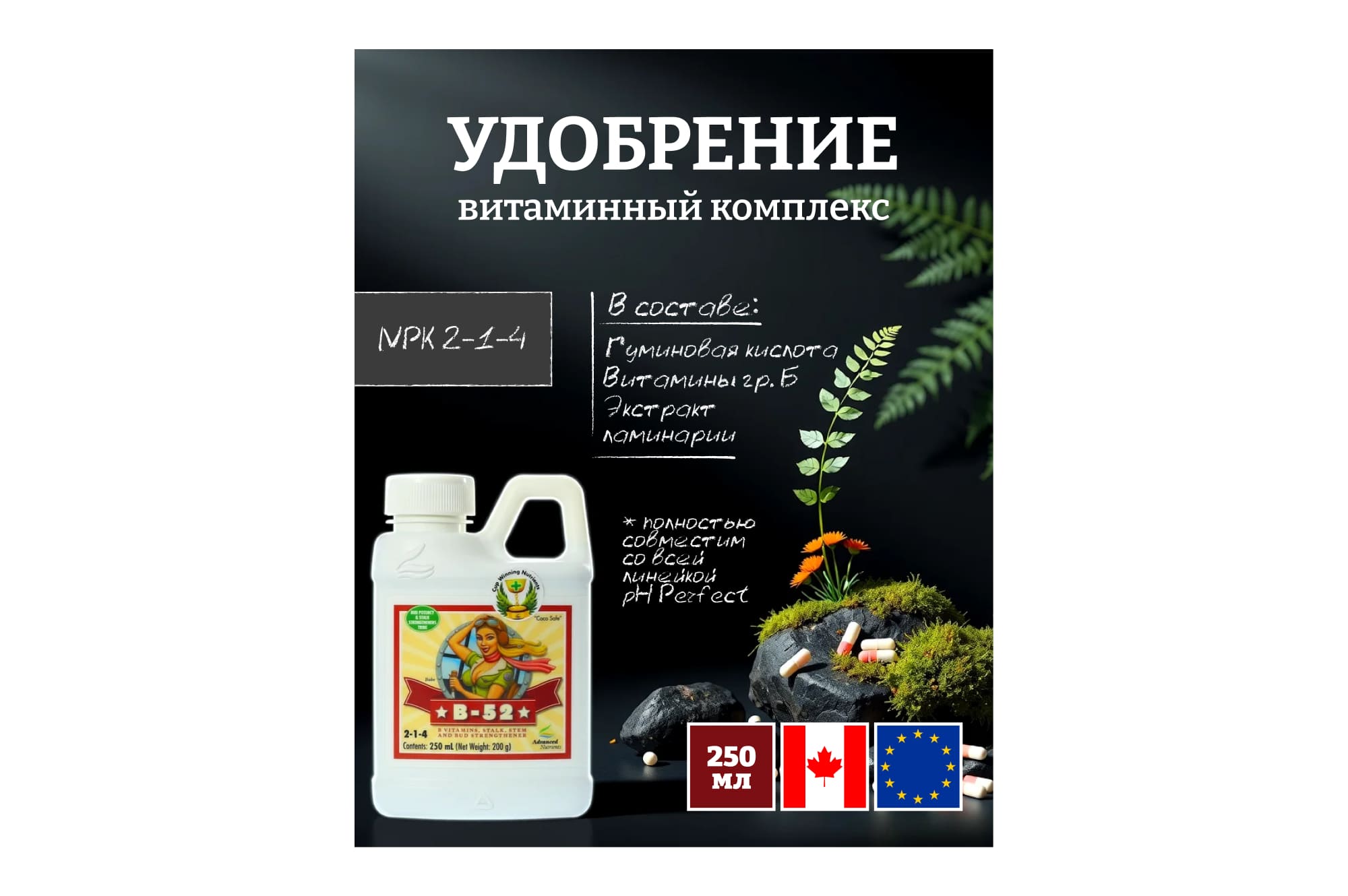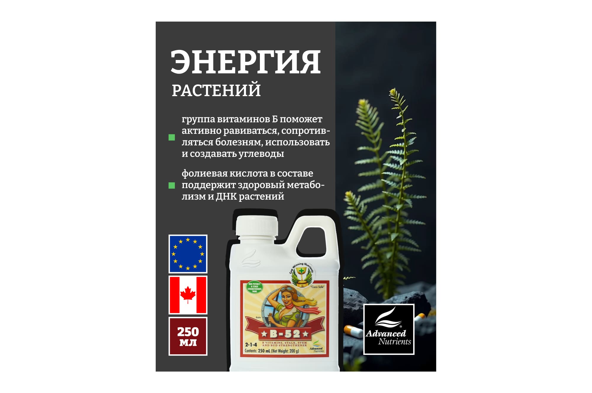 Витамин В1 (Тиамин) - помогает растениям использовать и создавать углеводы. Отличный рост, хороший иммунитет, здоровые корни.