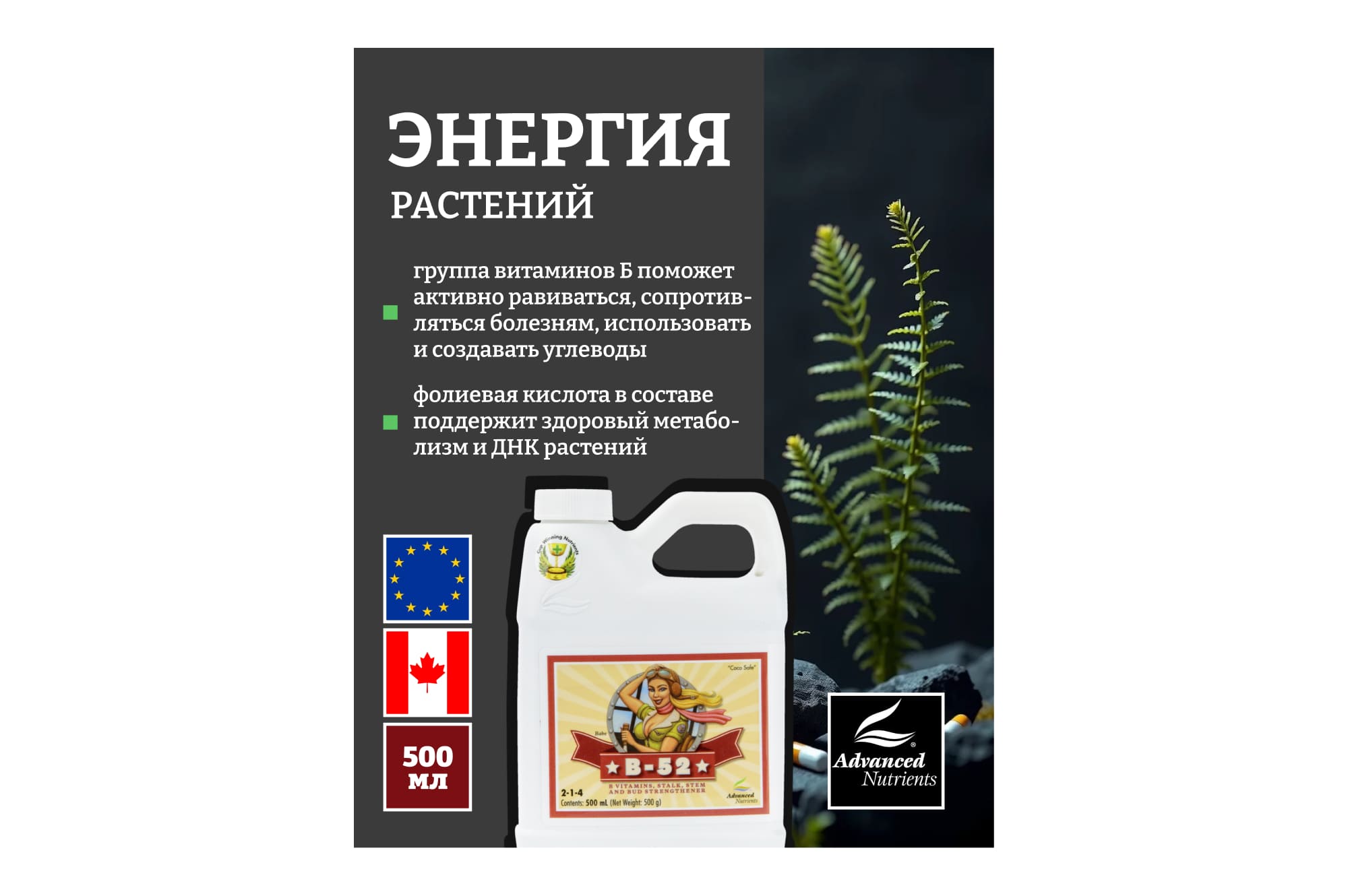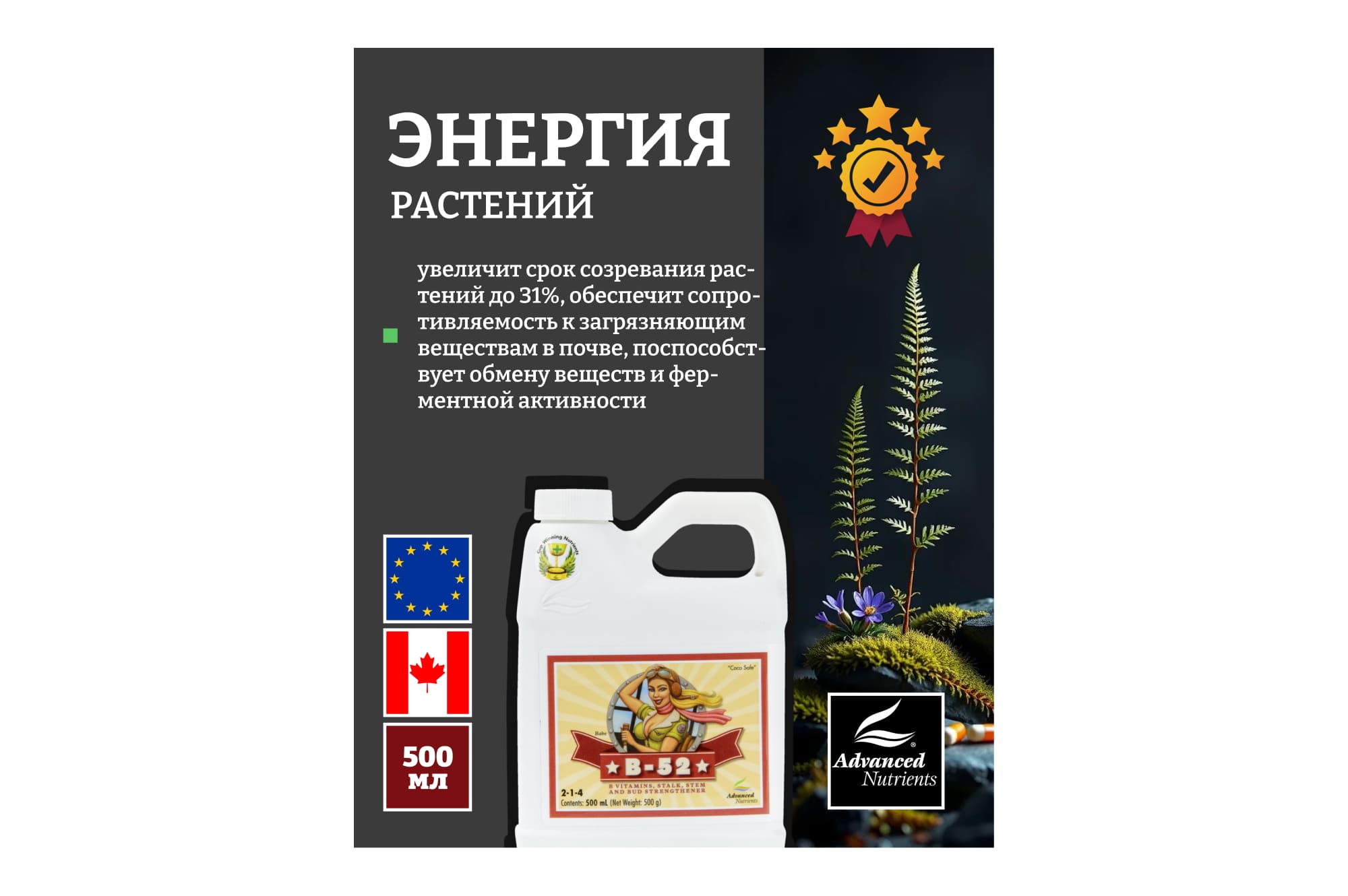 Витаминная добавка (производство – Канада) предназначена для стимуляции развития и роста растений. За счет повышения метаболизма растений обеспечивается увеличенное поглощение питательных веществ.