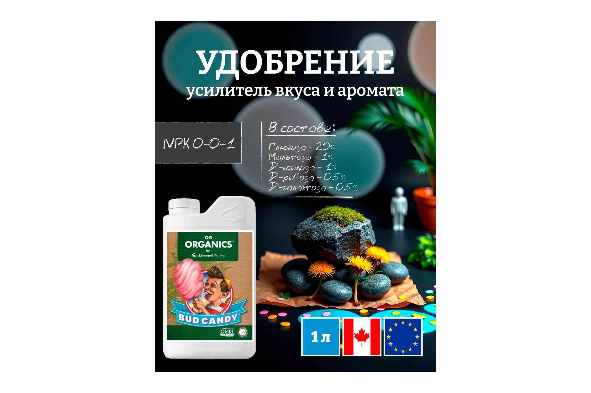 Благодаря полностью натуральным углеводам, сертифицированному OIM терпену и усилителю вкуса OG Organics™ Bud Candy® дает большие урожаи сладких и ароматных цветов, одновременно питая естественные микробы корневой зоны и создавая оптимальные условия для усиленного усвоения питательных веществ.