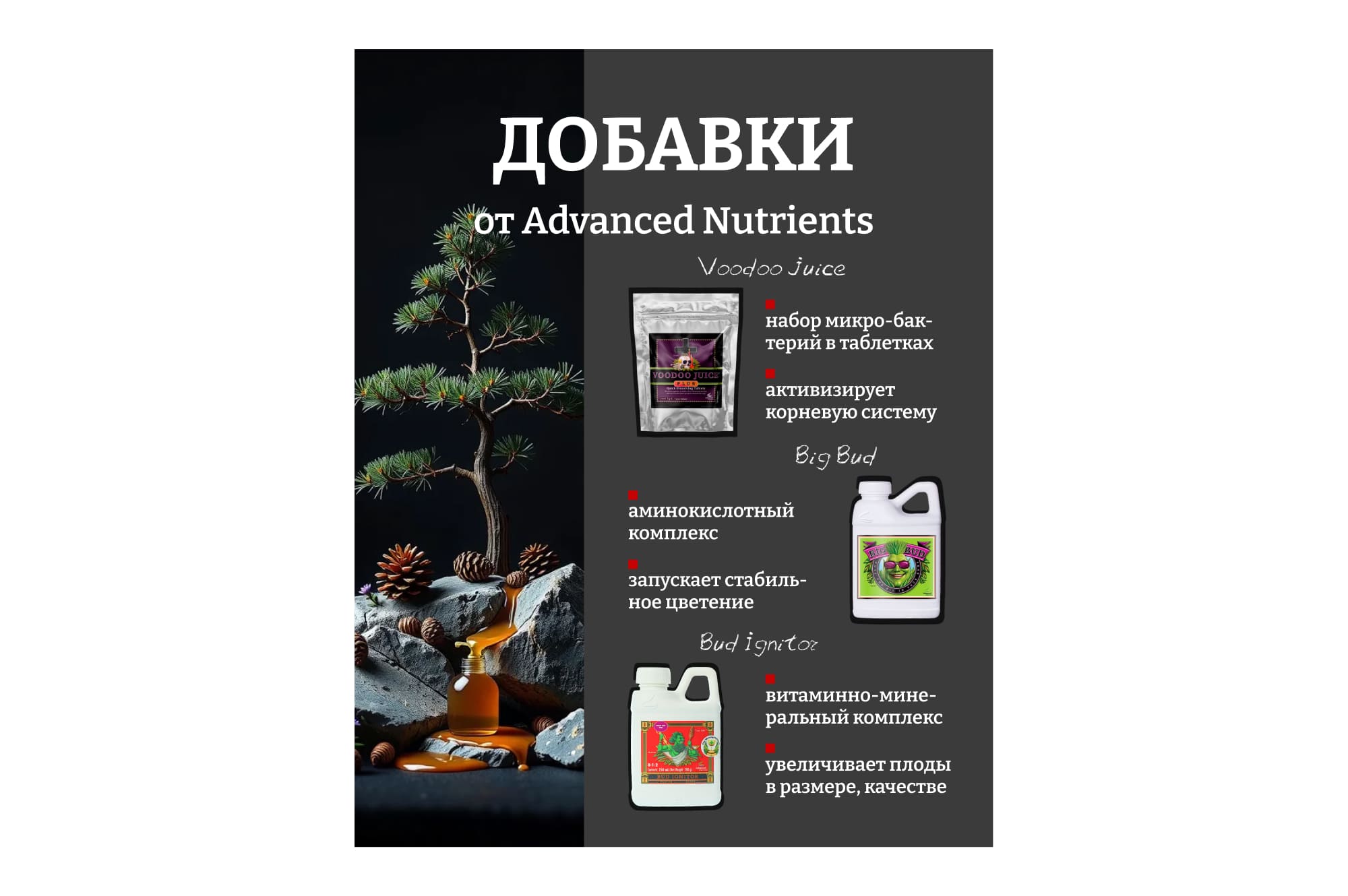 Это биохимический концентрированный стимулятор, активизирующий естественное выделение терпенов, определяющих количественные и качественные показатели выработки эфирных масел, цветения, формирования плодов и общего роста растений.