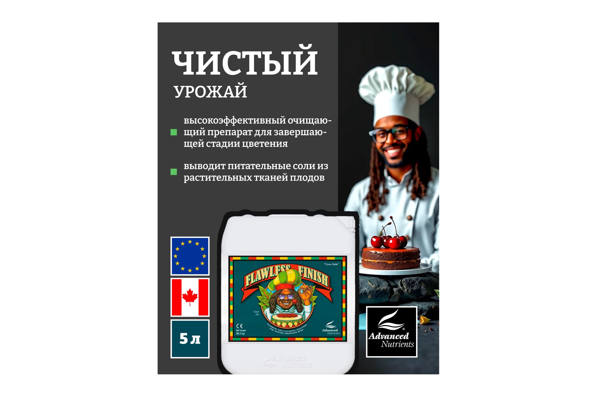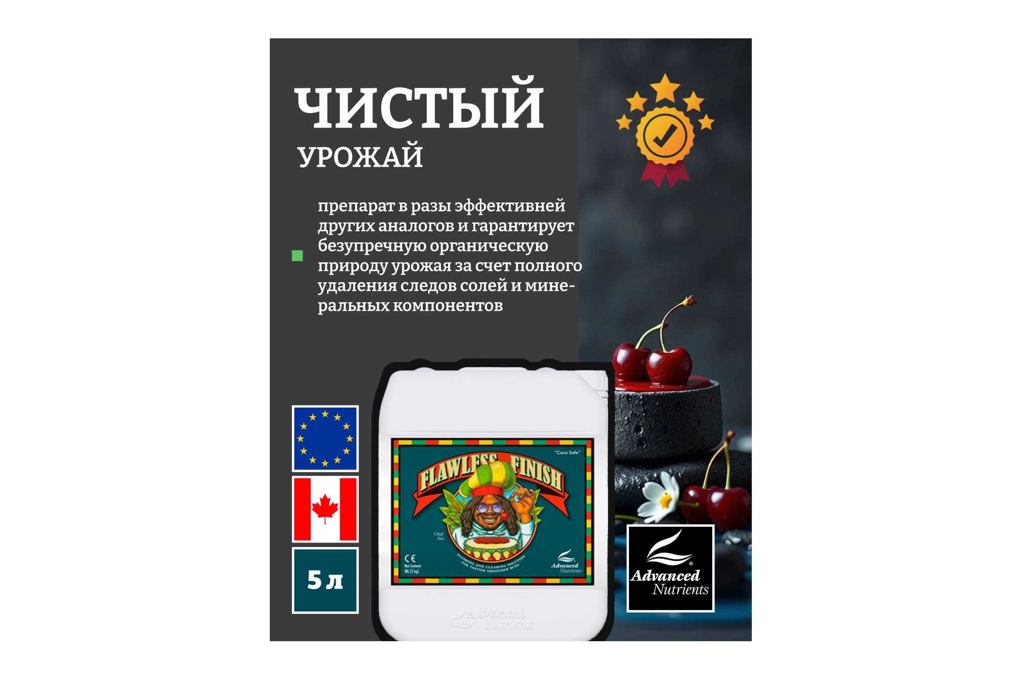 За счет полноценного выведения питательных солей из растительных тканей Advanced Nutrients Flawless Finish обеспечивает плодам и цветам растений, выращенных на субстрате и кокосе улучшенные питательные, вкусовые и ароматические свойства. Препарат в разы эффективней других аналогов и гарантирует безупречную органическую природу урожая за счет полного удаления следов солей и минеральных компонентов.