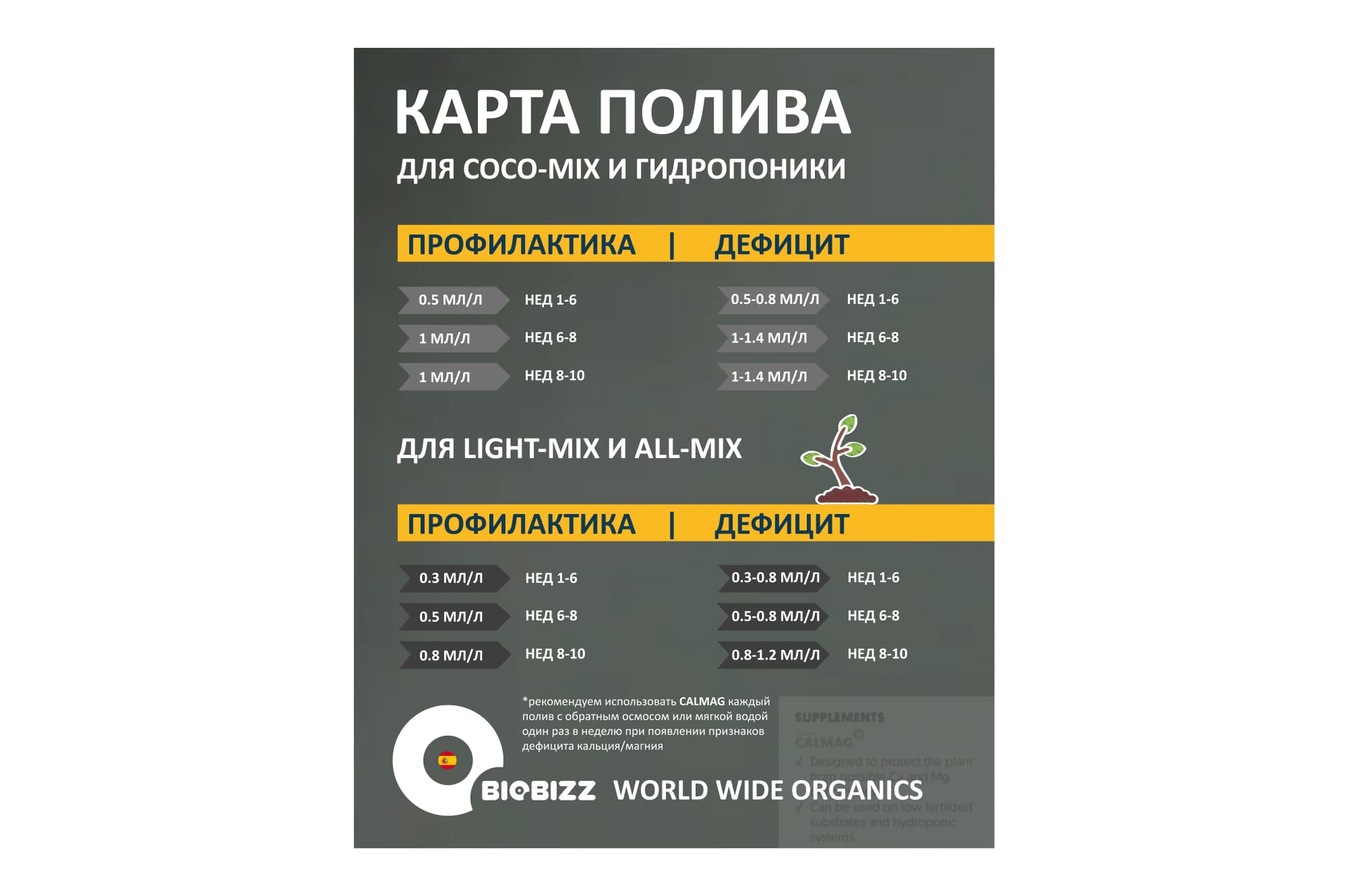 Органическая добавка BioBizz CalMag восполняет дефицит кальция и магния у растений, улучшает регенерацию клеток и фотосинтез, обеспечивает дополнительную подкормку во время роста и плодоношения. Сочетается со всей линейкой BioBizz, а также с бустерами и комплексами подкормки от сторонних производителей.