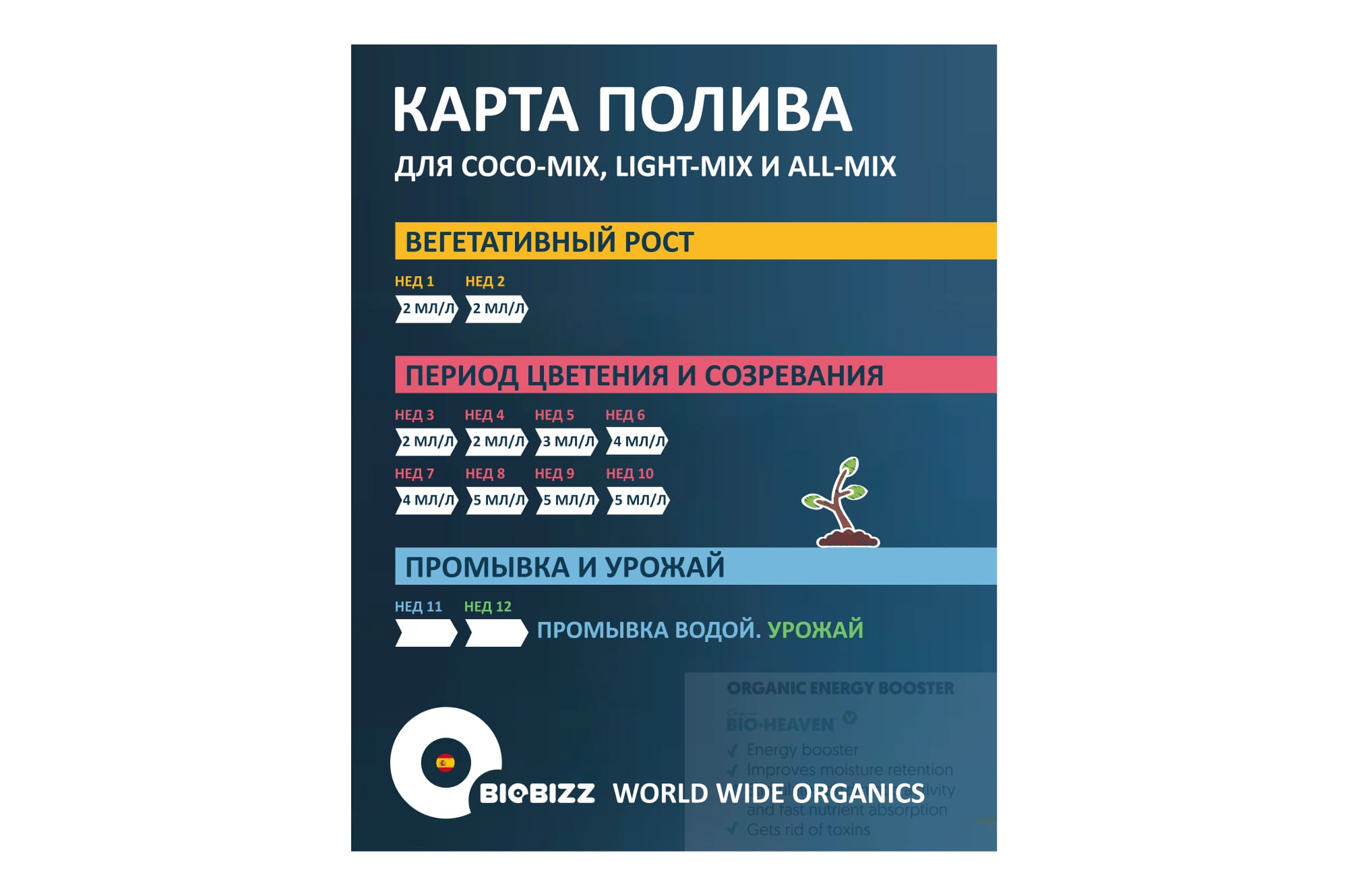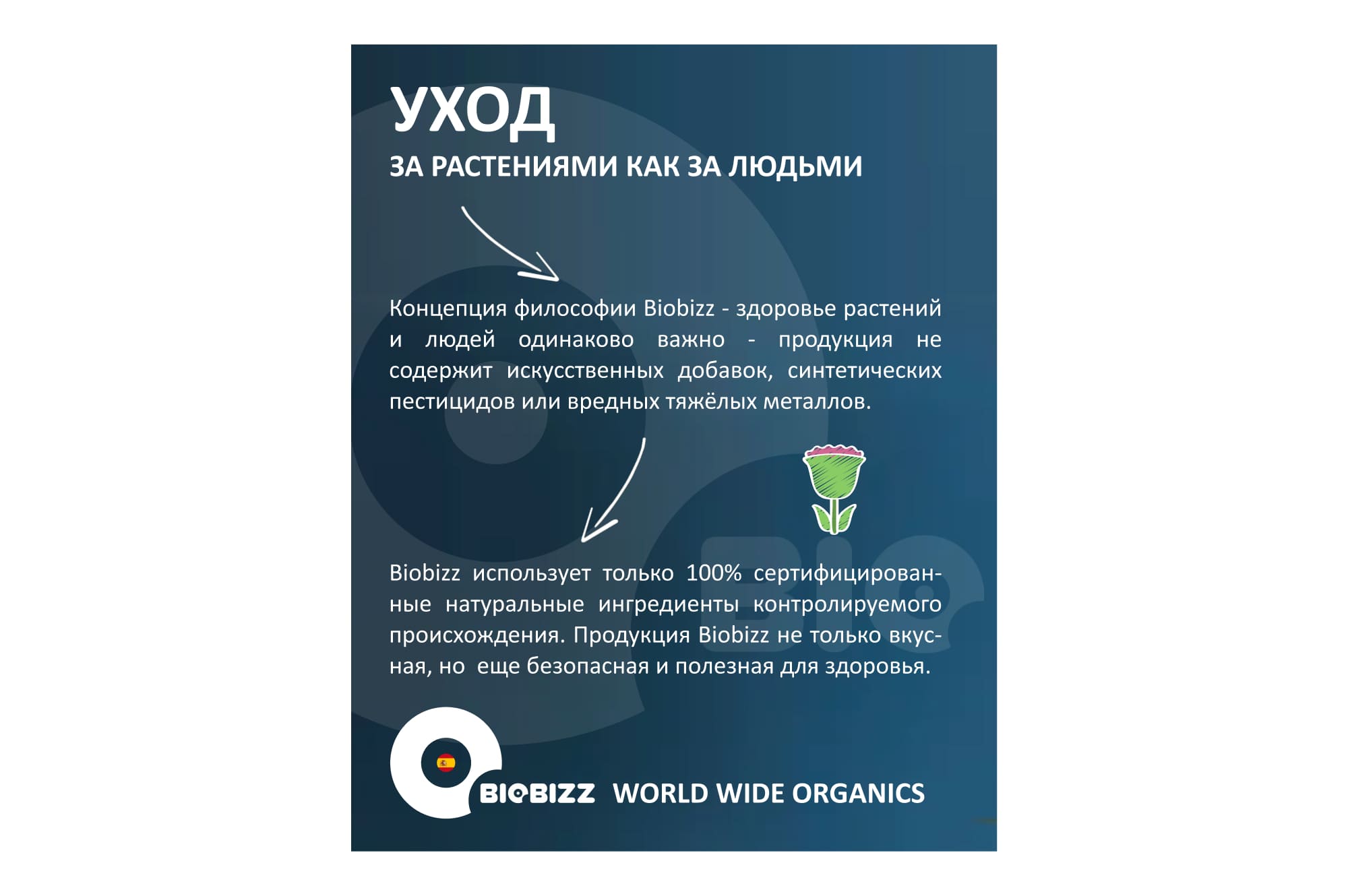 Стимулирующий препарат совместим со всем спектром продукции BioBizz, может использоваться для регулярного полива и всех ирригационных систем.