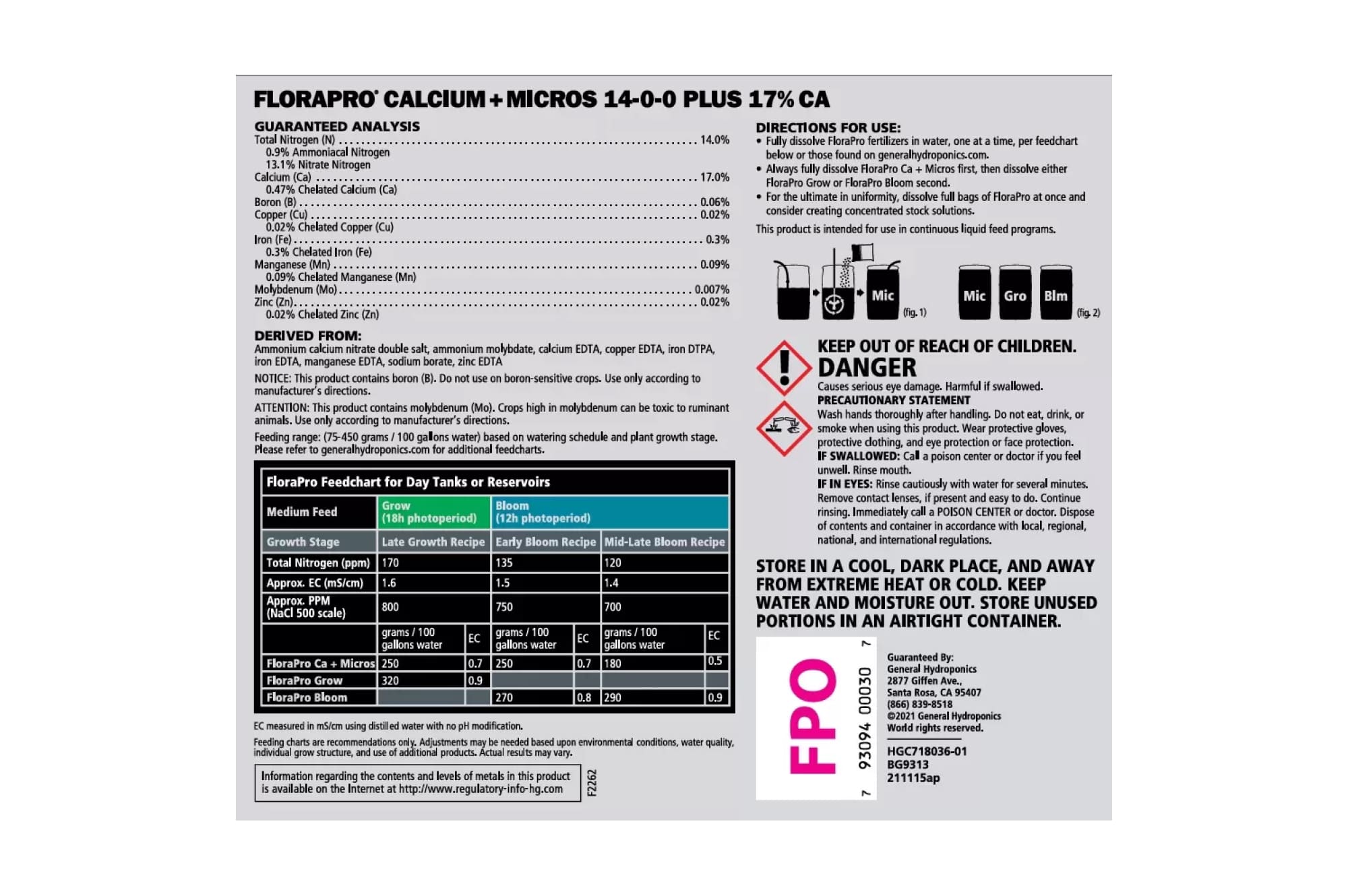 FloraPro Calcium + Micros — это выбор профессионалов, которые хотят стабильно высоких урожаев и уверены в качестве продукции General Hydroponics.