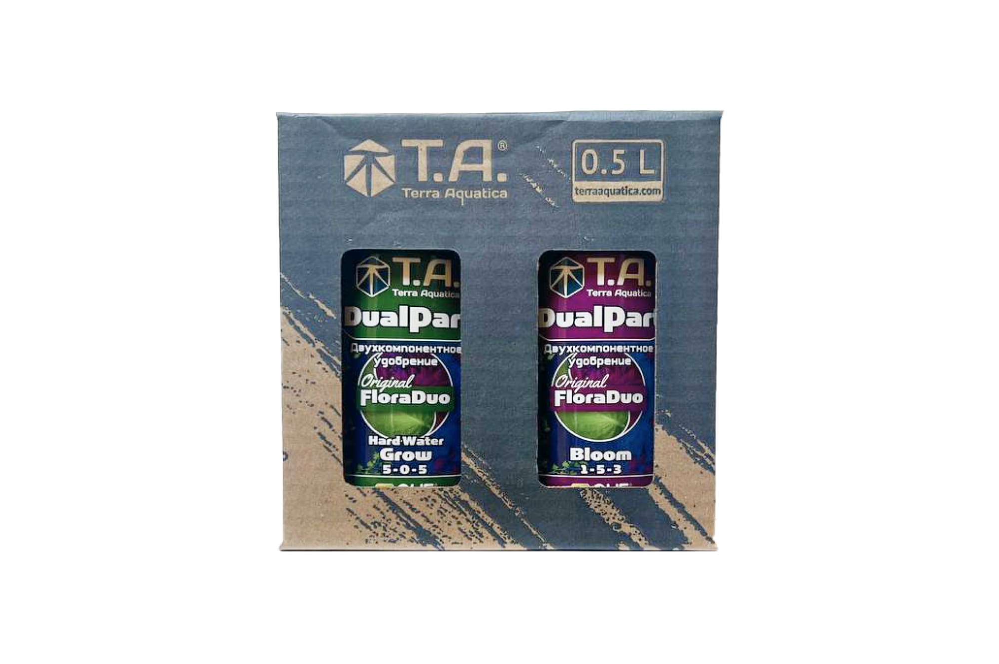 Комплект состоит из двух компонентов. Grow – эта часть предназначена для начальных фаз развития растений. Этот комплекс балансирует содержания основных макроэлементов в корневой системе и зеленой части растений в период интенсивной вегетации. Bloom – эффективная формула полезных веществ для повышения продуктивности всех видов культур. При обработке этой фракцией удобрения повышается численность соцветий, завязи и оптимизируются сроки созревания.