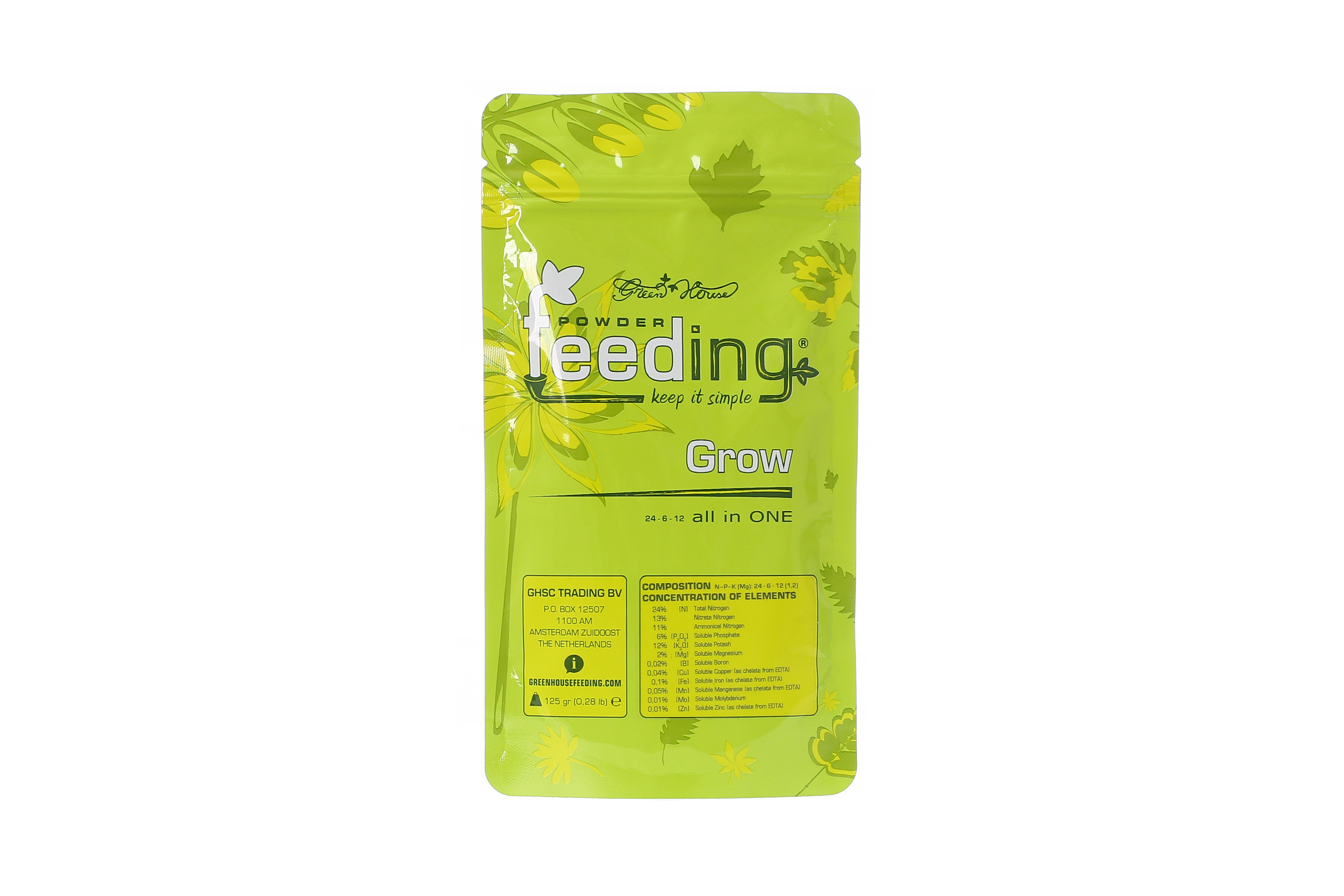 Powder Feeding Grow - базовое удобрение исключительно для фазы вегетации, а так же материнских растений. Разработано Голландскими экспертами компании Green House Seed Company, препарат позволит развиваться Вашим растениям с повышенной эффективностью, увеличивая кустистость и общий объём зеленой массы.