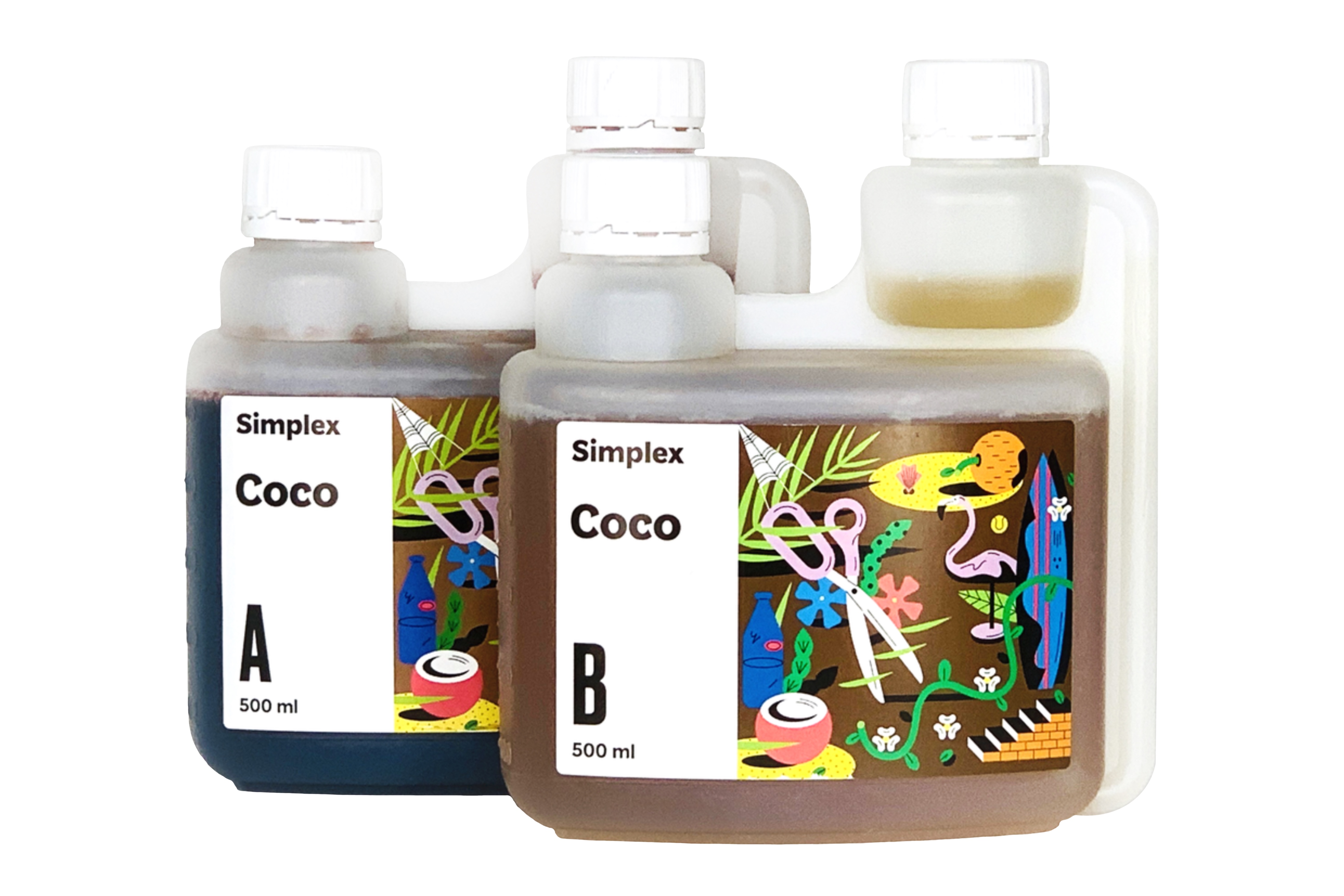 Simplex Coco A+B – двухкомпонентный комплекс органических, минеральных удобрений для выращивания культур на кокосовом субстрате. Используется в системах гидропоника, за исключением реверсивных типов.