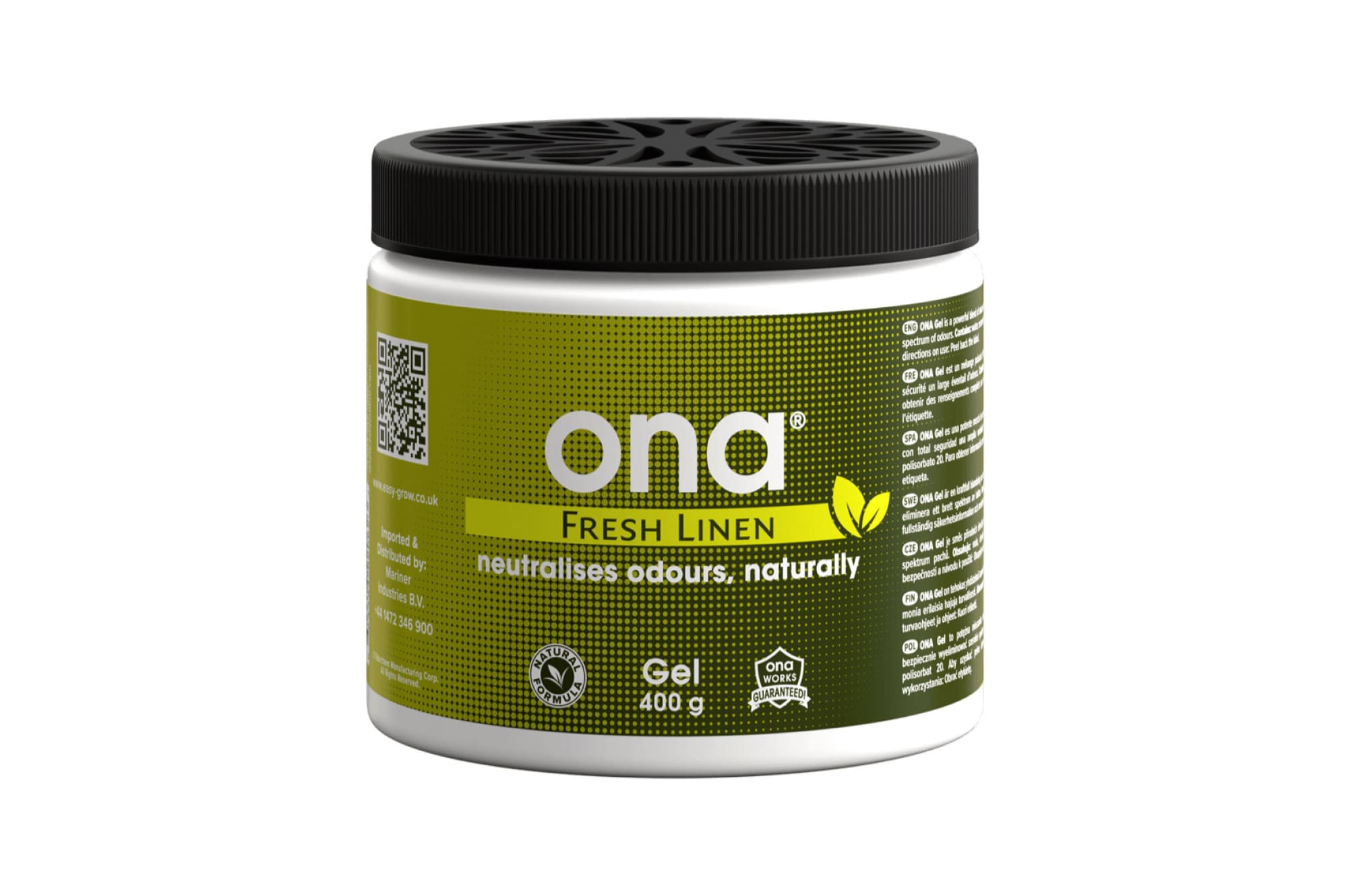 Гелевый устранитель запахов ONA Gel Fresh Linen в удобном формате 0.5 л идеально подойдет для размещения в гроубоксе любого размера. Этого объема достаточно для обработки площади в 9.3 м³ в течение месяца.