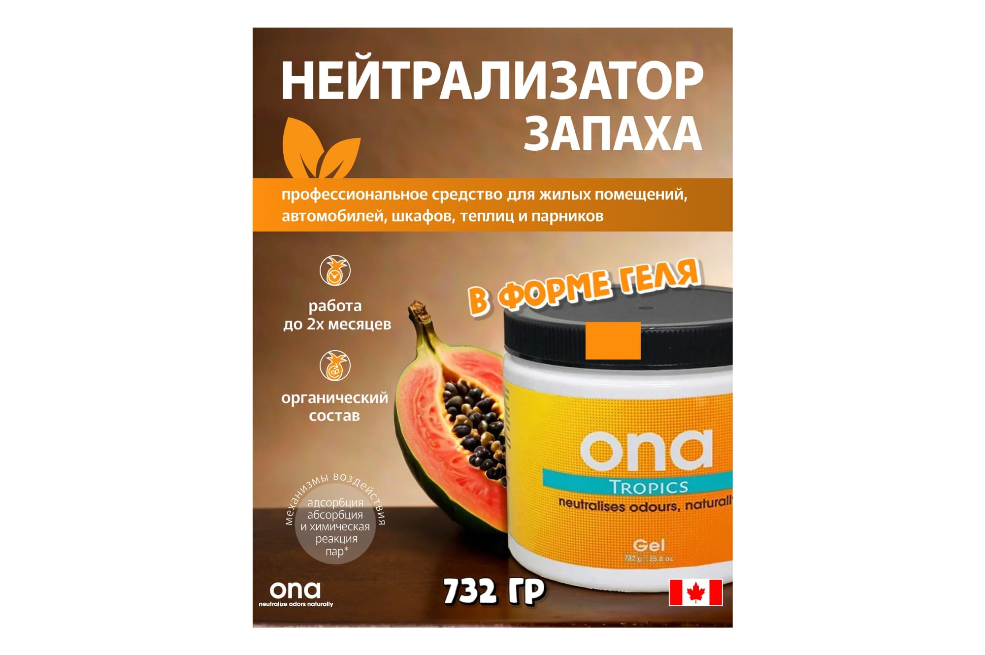 Блокатор запахов ONA Gel Tropics – универсальное средство для борьбы с тяжелыми и острыми ароматами. Нейтрализатор содержит в своем составе природные масла, выпускаемые в виде геля. Поэтому ONA Gel полностью уничтожает неприятные запахи любого вида, а не маскирует их.