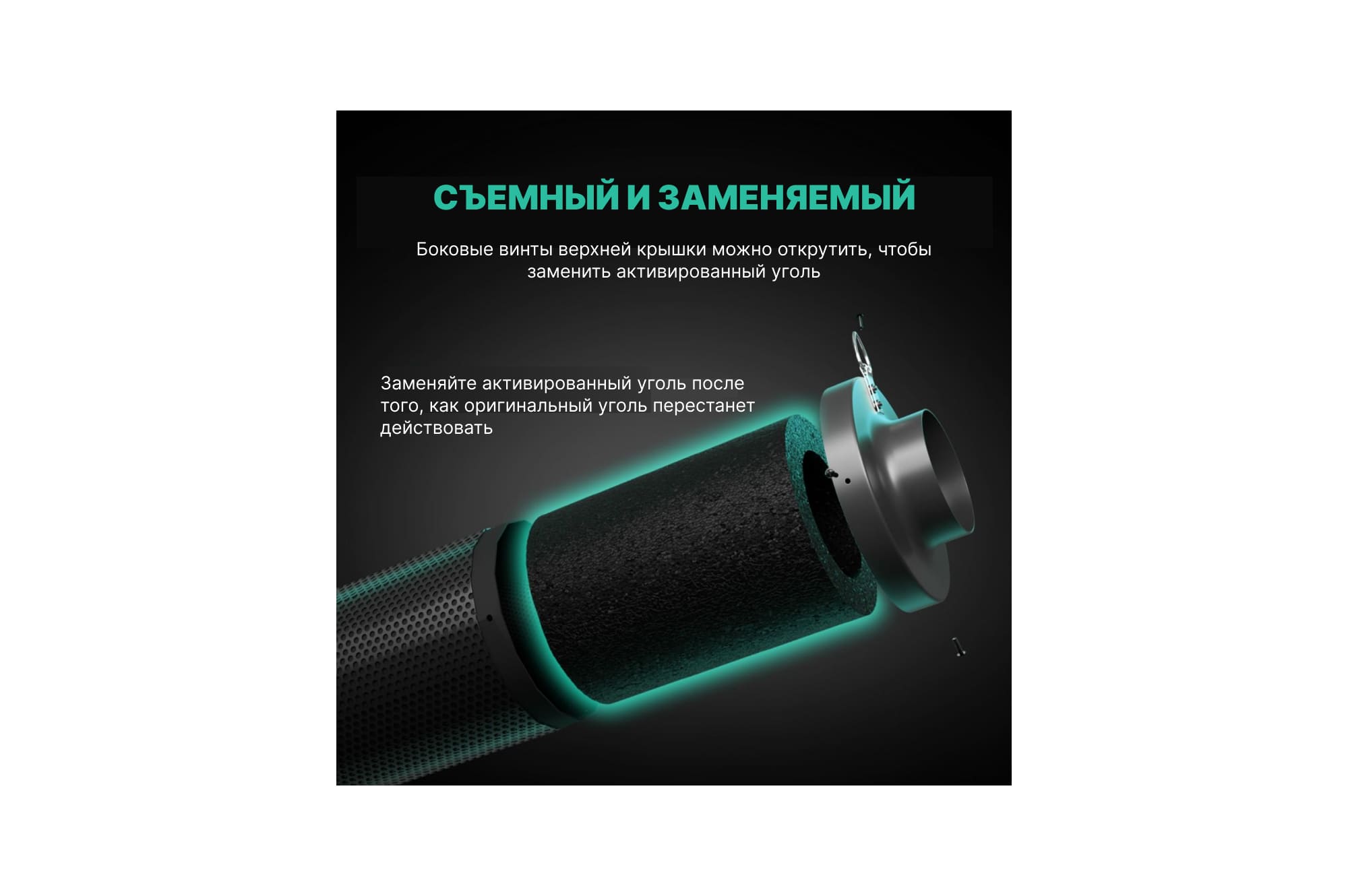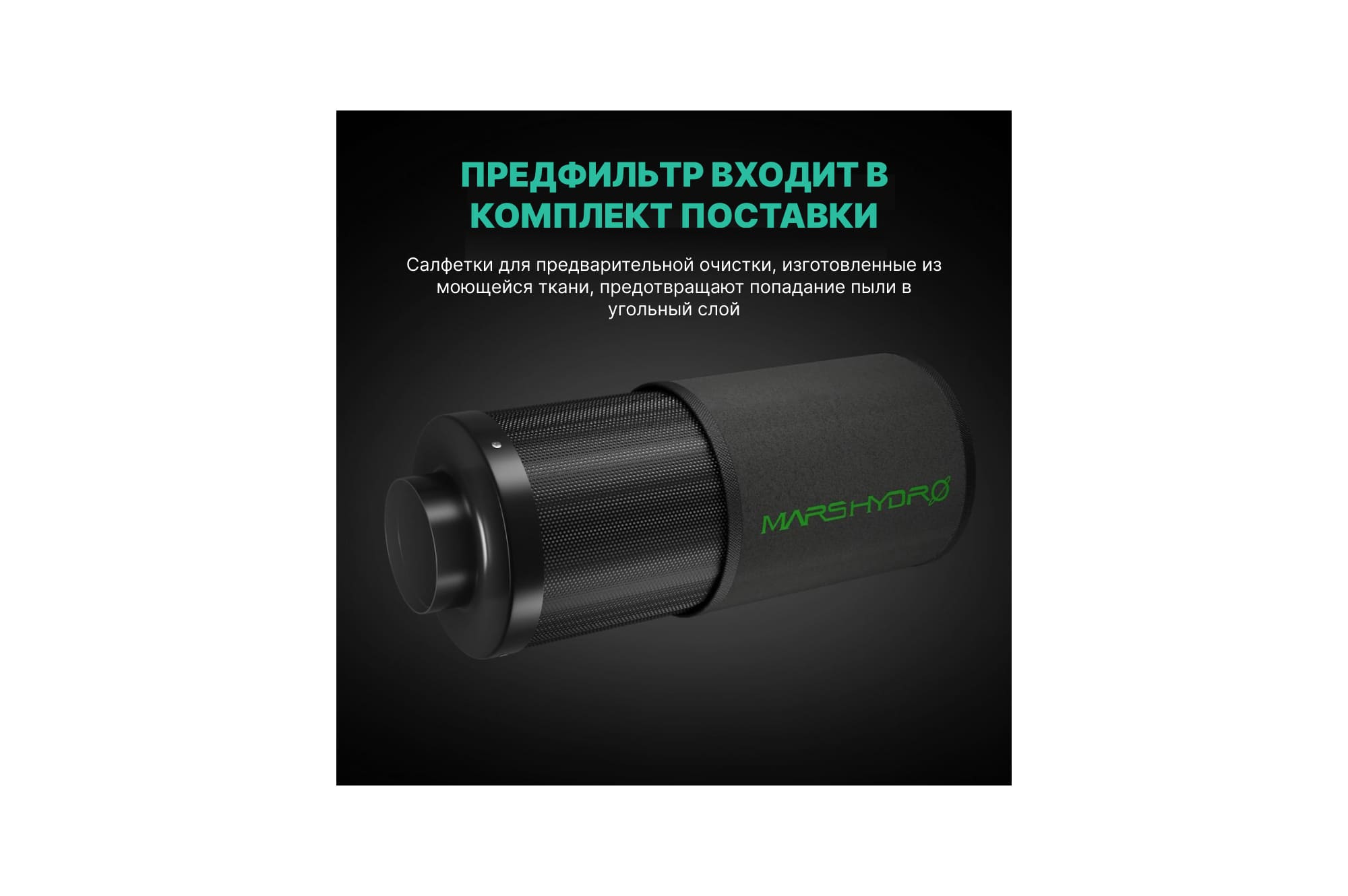 Угольный фильтр Mars Hydro Carbon Filter 6 имеет съемную конструкцию, уголь можно будет сменить на новый после полного рабочего цикла фильтра.