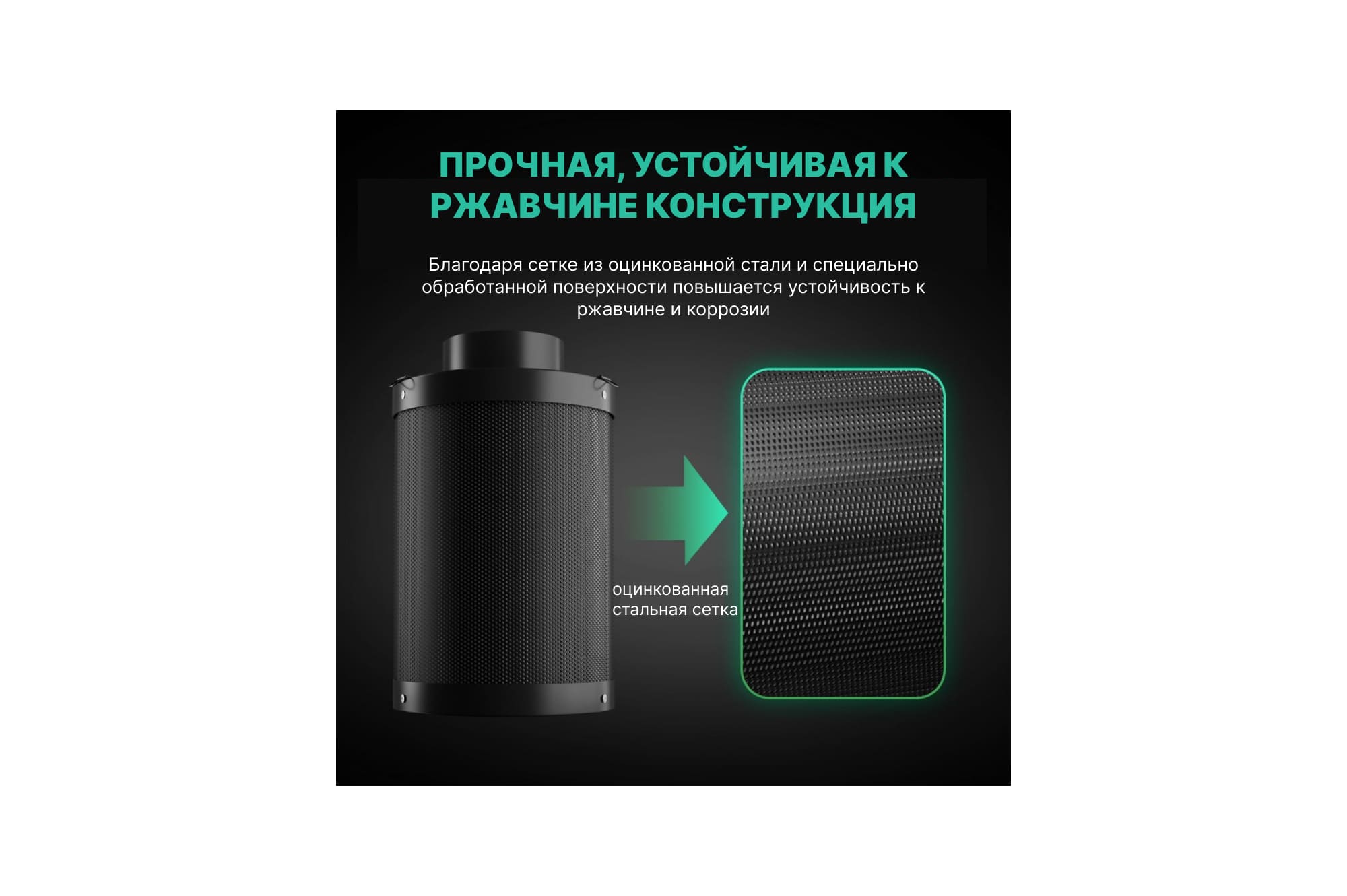 Особенности Mars Hydro Carbon Filter 6 включают прочную конструкцию с двойной оцинкованной сеткой, которая открывает 53% поверхности для прохода воздуха. Это увеличивает скорость и эффективность фильтрации, а предфильтровая ткань, которая входит в комплект, защищает уголь от загрязнений и продлевает срок службы фильтра. При этом воздушный поток, создаваемый фильтром, поддерживается на уровне 210 CFM — этого достаточно для эффективной работы в небольших и средних помещениях, включая теплицы и гидропонные установки.