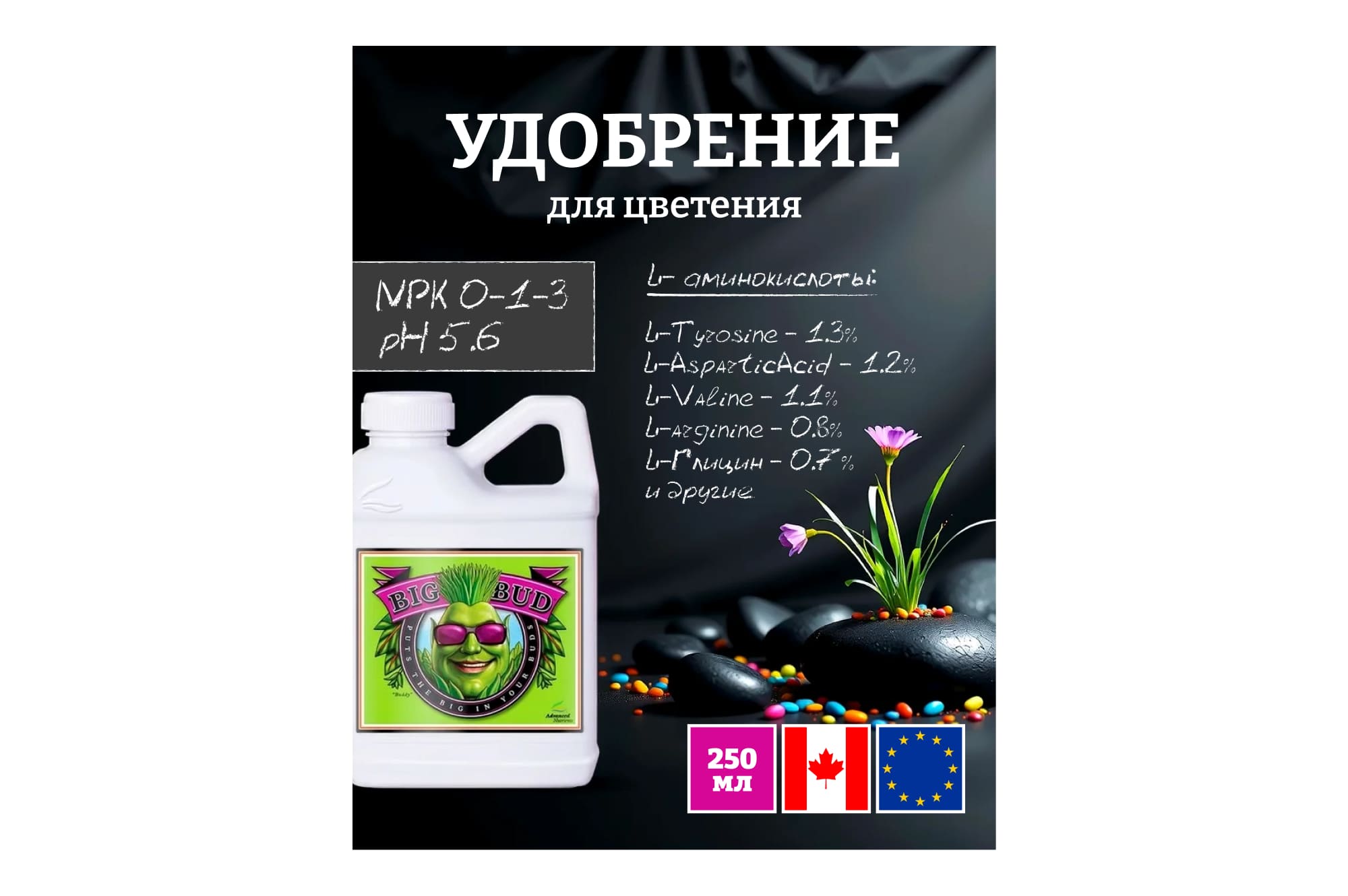 минеральная добавка фосфора, калия, магния и микроэлементов, для цветения